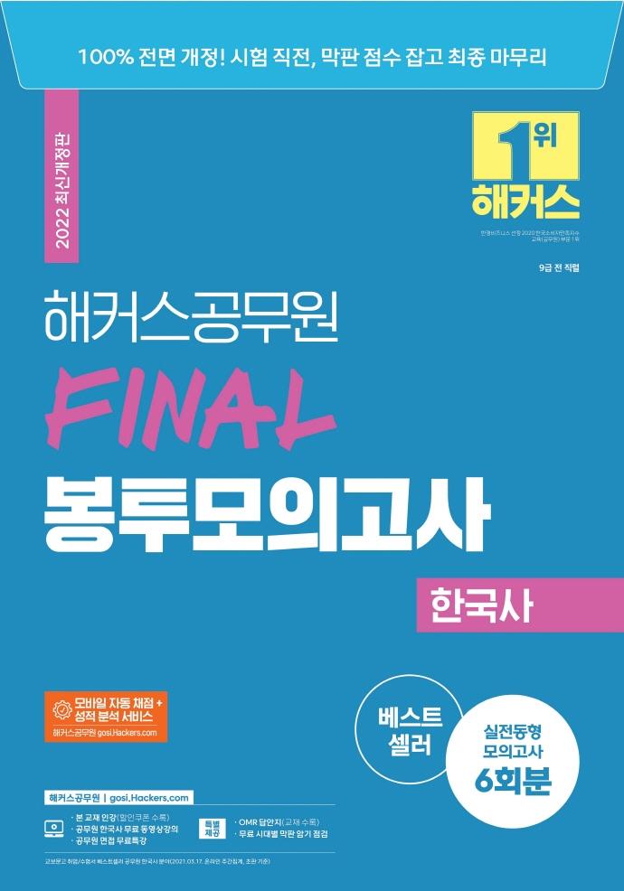 - 2022 ÇØÄ¿½º°ø¹«¿ø FINAL ºÀÅõ¸ðÀǰí»ç Çѱ¹»ç : 9±Þ Àü Á÷·Ä, 100% Àü¸é °³Á¤, ½ÇÀüµ¿Çü¸ðÀǰí»ç 6ȸºÐ ¼ö·Ï