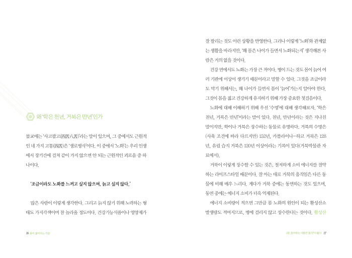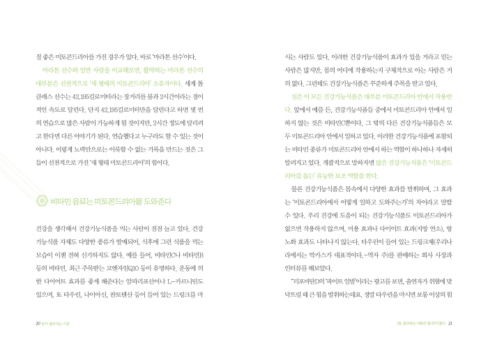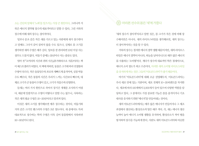 ÇÇ·ÎÇϰí, ü·ÂÀÌ ¾ø´Ù°í ¸öÀ» ½¬°Ô Çϸé, ¹ÌÅäÄܵ帮¾Æ´Â ±Ø¼ÒÇÏ°Ô ÁÙ¾îµé¾î ¿¡³ÊÁö¸¦ ¸¸µé ¼ö ¾ø´Â ¡®´ÄÀº ¸ö¡¯ÀÌ µÈ´Ù. ±×·¯¸é ¡®³ëÈ¿Í Áúº´ÀÇ ¾Ç¼øÈ¯¡¯¿¡ ºüÁø´Ù. °ÅºÏÀº ¿¡³ÊÁö¸¦ »ç¿ëÇÏÁö ¾Ê´Â ¡®¿¡³ÊÁö Àý¾à »ýȰ¡¯·Î Àå¼öÇÑ´Ù. - 32ÂÊ, <Á¦1Àå Àå¼öÇÏ´Â »ç¶÷Àº ¡®¸ö ¾È¡¯ÀÌ Àþ´Ù> Áß¿¡¼