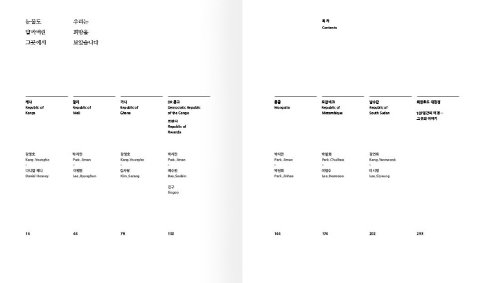 2. ³ª´Â ³²¾ÆÇÁ¸®Ä«°øÈ±¹¿¡ ´Ù³à¿Â ÀÌÈÄ ³ÑÄ¡´Â ¿¡³ÊÁö, Çã¹°¾øÀÌ ´Ù°¡¿À´Â »ç¶÷µéÀÇ ¸ð½À¿¡ ¸Å·áµÆ°í, ¾ÆÇÁ¸®Ä«¸¦ µ¿°æÇϰí ÀÖ¾ú´Ù. ±×·¡¼ ¼±¹è¿¡°Ô ÀÌ·± Á¦¾ÈÀ» ¹Þ¾ÒÀ» ¶§, ¾Æ¹« Á¶°ÇÀ̳ª ¸Á¼³ÀÓ ¾øÀÌ ¶°³µ´ø °Í °°´Ù. ±×¸®°í Á¤È®ÇÏ°Ô º¸°í ¹Ù¸£°Ô ÂïÀÚ´Â »ý°¢À» Çß´Ù. ÇØ¿Ü ºÀ»çȰµ¿À» ´Ù·é ¸¹Àº ¿µ»ó¹°¿¡¼ ¾ÆÀ̸¦ ¾È°í Èå´À³¢´Â ¹è¿ìµéÀ» º¸¾Ò°í, ½ÇÀº ±×°ÍÀÌ Á¤È®ÇÏ°Ô ¾îµð±îÁö°¡ Áø½ÉÀÎÁö ¾îµð ÇÑ ¹ø º¸ÀÚ°í ÀÛÁ¤À» ÇßÀ»Áöµµ ¸ð¸¥´Ù. ±×·±µ¥ ÇöÀåÀ» º¸ÀÚ ¸·¸·Çß´Ù. ¿Ö ±×·¸°Ô »ì¾Æ¾ß ÇÏ´Â °ÇÁö, ¾î¶»°Ô »ì¾Æ°¥Áö∙∙∙ ¹è°íÇİú Áúº´¿¡ ½ÅÀ½ÇÏ´Â ¾ÆÀ̵éÀ» º¸°í ÇÒ ¸»À» ÀÒ¾ú´Ù. °¡Àå Èûµé¾ú´ø °ÍÀº µµ¿òÀ» ÁÖ¾ú´ø ¾ÆÀ̰¡ ¼¼»óÀ» ¶°³µ´ø ÀÏÀÌ´Ù. ´Ù½Ã ¸¸³ª·¯ ¿ÔÀ» ¶§, ó·®ÇÑ ¹«´ý ¾Õ¿¡ ¾É¾Æ ¿ï´ø ¾ÆÀÌ ¾î¸Ó´ÏÀÇ ¾ó±¼À» º¸¸ç óÀ½À¸·Î ¸¹Àº °¥µîÀ» Çß´Ù. Àú »ç¶÷µµ °¨Á¤ÀÌ Àִµ¥ ³»°¡ ¹«´ý ¾Õ¿¡¼ ±¸µµ¸¦ »ý°¢ÇÏ¸é¼ »çÁøÀ» ²À Âï¾î¾ß Çϳª∙∙∙ ±×·± »ý°¢¿¡ ³ª ÀÚ½ÅÀÌ ºñ°ÌÇÏ°Ô ´À²¸Á³´ø °Í °°´Ù. ∙∙∙(Áß·«)∙∙∙ ¾ÆÁ÷µµ ¸ÕÀú ´Ù°¡¿Í ¿Í¶ô ¾È¾ÆÁÖ´ø ¾ÆÇÁ¸®Ä« ¼Ò³â Çϳª°¡ »ý°¢³´Ù. Á» ´õ ¾È¾ÆÁÖ°í ¿Ã °É ±×·¨´Ù. ¹Ì¾ÈÇÏ´Ù ¾êµé¾Æ!