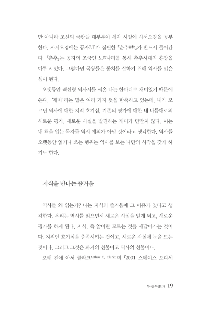 ¿ª»ç¸¦ ¿Ö Àд°¡? ³ª´Â Áö½ÄÀÇ Áñ°Å¿ò¿¡ ±× ÀÌÀ¯°¡ ÀÖ´Ù°í »ý°¢ÇÑ´Ù. ¿ì¸®´Â ¿ª»ç¸¦ ÀÐÀ¸¸é¼ »õ·Î¿î »ç½ÇÀ» ¾Ë°Ô µÇ°í, »õ·Î¿î Æò°¡¸¦ ÇÏ°Ô µÈ´Ù. Áö½Ä, Áï ¾ÍÀ̶õ ¸ð¸£´Â °ÍÀ» ±ú´Þ¾Æ°¡´Â °ÍÀÌ´Ù. ÁöÀûÀΠȣ±â½ÉÀ» ÃæÁ·½ÃŰ´Â °ÍÀ̰í, »õ·Î¿î »ç½Ç¿¡ ´«À» ¶ß´Â °ÍÀÌ´Ù. ±×¸®°í ±×°ÍÀº °ú°ÅÀÇ ¼±¹°ÀÌ°í ¿ª»çÀÇ ¼±¹°ÀÌ´Ù.