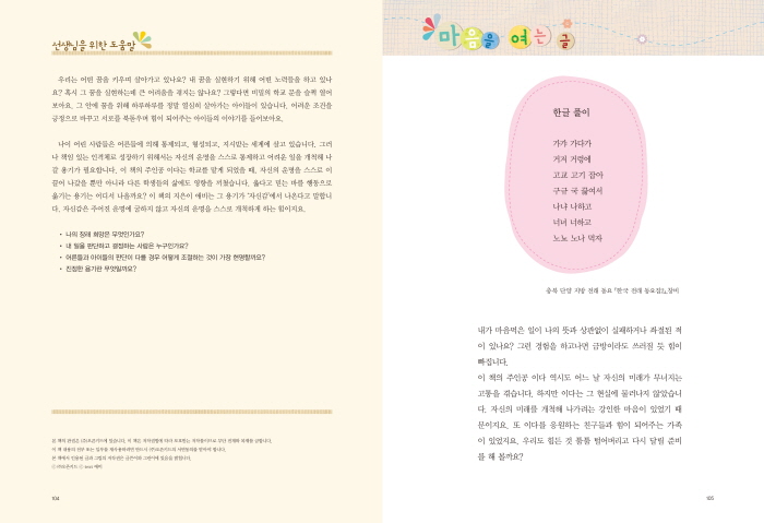 ÀúÀÚ ±è¹Ì¼÷Àº ¿À·£ ½Ã°£ ¾î¸°ÀÌ Ã¥°ú ÇÔ²² »ýȰÇϰí ÀÖ½À´Ï´Ù. ÇöÀç ¾î¸°ÀÌ Ã¥À» ¸¸µå´Â ÀÏÀ» Çϰí Àְųª µ¶¼±³À°ÀÇ ÇöÀå¿¡¼ Ȱµ¿Çϰí ÀÖ´Â ¾î¸°ÀÌ Ã¥ Àü¹® Àϲ۵éÀÔ´Ï´Ù. ´Ã ¾î¸°ÀÌ Ã¥À» »õ·Î¿î ´«À¸·Î ¹Ù¶óº¸°í?ÀÚ ÇÕ´Ï´Ù. Ã¥À» ÅëÇØ ¾î¸°À̵éÀÇ ¸¼Àº °¨¼º°ú ¹Ù¸¥ ½É¼ºÀÌ ´õ¿í ºûÀ» ¹ßÇÏ±æ ¸¶À½ÀÌ ÇѰᰰ½À´Ï´Ù. ¾î¸°ÀÌ Ã¥¿¡ ´ëÇÑ °í¹Î°ú ¿Á¤, µ¶¼±³À° °æÇèÀ» ¹ÙÅÁÀ¸·Î ¾î¸°ÀÌ¿Í ºÎ¸ð´Ô, ¼±»ý´Ôµé¿¡°Ô ½ÇÁúÀûÀÎ µµ¿òÀ» ÁÖ°íÀÚ ÀÌ Ã¥À» ¸¸µé¾ú½À´Ï´Ù.