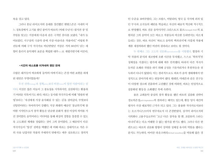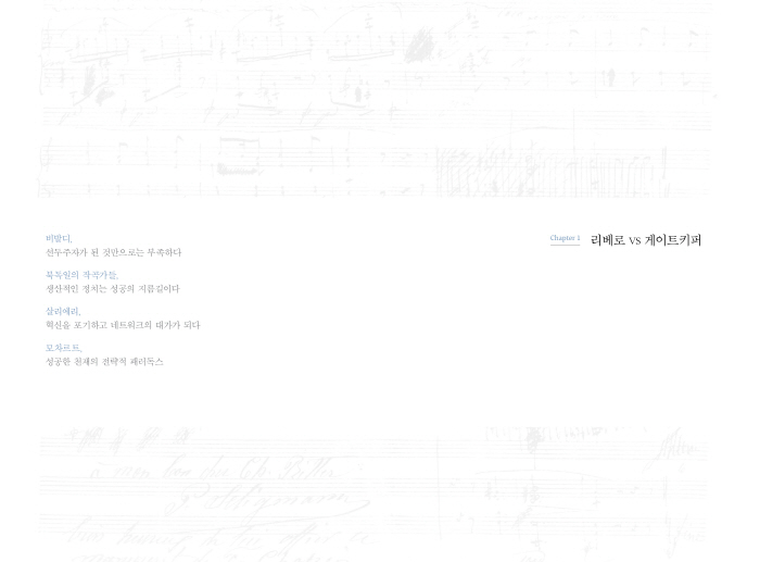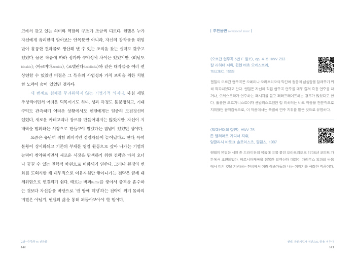 Çö´ëÀÇ °æ¿µÀÚ³ª 17¼¼±âÀÇ À½¾Ç°¡ »çÀÌ¿¡ °øÅëÁ¡ÀÌ ÀÖ´Ù¸é, ¸ðµÎ °æÀïÀÌ Ä¡¿ÇÑ È¯°æ¿¡¼ º¯È¿Í ÀûÀÀÀ» °ÅµìÇØ °¡¸ç »ýÁ¸ Àü·«À» ÆîÃÄ¾ß ÇÑ´Ù´Â Á¡ÀÌ´Ù. ¦¢p.25