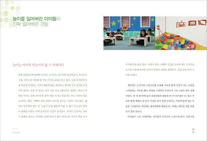 ³îÀ̸¦ ÇÒ ¶§ ¡®Àß ³î¾Æ¾ß ÇØ! ³»°¡ ÀÌ ³îÀ̸¦ ¿ÏÁÖÇØ¾ß µÅ! ÀÌ ³îÀ̸¦ ²À ¼º°øÇØ¾ß µÅ!¡¯¶ó°í »ý°¢ÇÏ¸ç ³ë´Â ¾ÆÀ̵éÀº ¾Æ¹«µµ ¾ø´Ù. ¾ÆÀ̵éÀº ½Ã°£ÀÌ ³ª¸é ±×³É ±âºÐ ÁÁ°Ô ³ë´Â °ÍÀÌ´Ù. ÇÏÁö¸¸ ºÎ¸ðÀÇ ±â´ë°¨ÀÌ ³Ê¹« ³ôÀº ¾ÆÀ̵éÀº Á¢ÇÏ´Â ¸ðµç Ȱµ¿À» ¡®Àß ¼öÇàÇØ¾ß ÇÏ´Â °úÁ¦¡¯·Î »ý°¢ÇÏ°Ô µÈ´Ù. ¶§¹®¿¡ ÇнÀÀÌ ¾Æ´Ñ ³îÀÌ »óȲÀÌ ÁÖ¾îÁö´õ¶óµµ Àß ¼öÇàÇØ³»¾ß ÇÑ´Ù°í »ý°¢ÇÏ°Ô µÇ´Â °ÍÀÌ´Ù. ¾ÆÀÌ¿¡°Ô´Â Ã¥µµ ³¡±îÁö Àоî¾ß ÇÏ´Â °úÁ¦, ÆÛÁñµµ ¸ðµÎ ¸ÂÃß¾î¾ß ÇÏ´Â °úÁ¦´Ù. »Ó¸¸ ¾Æ´Ï¶ó Ä£±¸µé°ú ³ë´Â °Íµµ, °ø³îÀ̸¦ ÇÏ´Â °Íµµ, ºí·ÏÀ» ½×´Â °Íµµ ¸ðµÎ ¼öÇà°úÁ¦·Î »ý°¢ÇÏ°Ô µÈ´Ù. ¶§¹®¿¡ Àڽоø¾î Çϴ Ȱµ¿Àº ±×°ÍÀÌ ³îÀ̵ç ÇнÀÀ̵ç ÀÏ´Ü ¹æÇظ¦ ÇÏ´Â °ÍÀÌ´Ù.