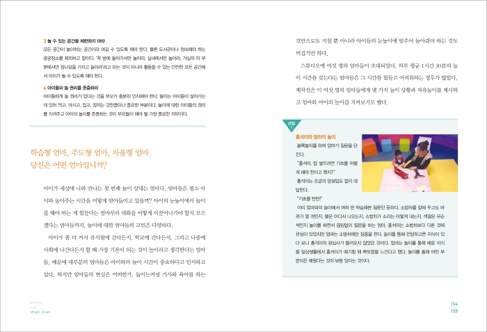 ¾Æºü´Â ³îÀ̸¦ ÇнÀÀ¸·Î »ý°¢Çϱ⺸´Ù´Â ´Ü¼øÇÏ°Ô Àç¹Ì·Î »ý°¢ÇÑ´Ù. Àç¹ÌÀÖ´Â ³îÀ̸¦ Áñ±â±â À§Çؼ´Â ¹«¾ùº¸´Ù µ¿µîÇÑ °ü°è¿¡¼ ³îÀ̰¡ ÀÌ·ç¾îÁ®¾ß ÇÑ´Ù. ±×·± °ü°è ¼Ó¿¡¼ ÀÌ·ç¾îÁö´Â ³îÀÌ´Â ¸¶Ä¡ Ä£±¸ÀÇ °ü°è¸¦ ¸Î´Â °Í°úµµ °°Àº È¿°ú¸¦ ¾ò°Ô µÈ´Ù. ¾Æºü¿Í Ä£±¸Ã³·³ ÇÔ²²ÇÏ´Â ³îÀ̸¦ ÅëÇØ¼ ´Ù¸¥ »ç¶÷ÀÇ °¨Á¤À» ÀÐ°í ±× °¨Á¤¿¡ ¸ÂÃç¼ ³» °¨Á¤À» Á¶À²ÇÏ´Â ¹æ¹ý µîÀ» ÀÚ¿¬½º·´°Ô ¹è¿ö³ª°¥ ¼ö ÀÖ´Ù. ¶§¹®¿¡ ³îÀÌ¿¡ ÀÖ¾î¼ ¾ö¸¶º¸´Ù ¾Æºü¿Í ½Ã°£À» ¸¹ÀÌ º¸³»´Â ¾ÆÀ̵éÀº ´ç¿¬È÷ »çȸ¼ºÀÌ ´õ Å©°Ô ¹ß´ÞÇÏ´Â °ÍÀÌ´Ù.