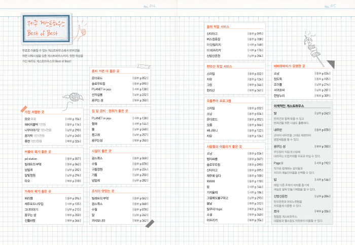 Àú¼·Î <´À¸²º¸¿©Çà>, <°Ô½ºÆ®ÇϿ콺 123>, <Á¦ÁÖ °Ô½ºÆ®ÇϿ콺 200>, <ÀÚµ¿Â÷ ÁÖ¸»¿©Çà ÄÚ½ººÏ> µîÀÌ ÀÖ´Ù.