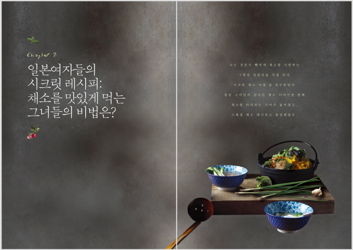 ÀϺ»¿ä¸®´Â ±× ¼¶¼¼ÇÔ°ú Á¤°¥ÇÔ ´öºÐ¿¡ ¾ðÁ¦³ª °¨Åº»ç¸¦ ÀھƳ½´Ù. ÀúÀÚÀÎ °Çѳª°¡ µé·ÁÁִ ä¼Ò À̾߱⿡ ºüÁ®µé´Ù º¸¸é ÀϺ»¿©ÀÚµéÀÇ Ã¤¼Ò ·¹½ÃÇǸ¦ ´çÀå ½Çõ¿¡ ¿Å±â°í ½Í¾îÁø´Ù. ´«À¸·Î ·¹½ÃÇǸ¦ Àо±â¸¸ ÇØµµ ¸ö°ú ¸¶À½ÀÌ °Ç°ÇØÁö´Â µí ÇູÇÏ´Ù.