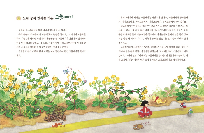 °æ±âµµ¿¡¼ ž ¼¿ï´ëÇб³¿¡¼ ¼¾çȸ¦ Àü°øÇÏ¿´´Ù. °í¾çÀÌ¿Í °°Àº µ¿¹°µé°ú ±æ°¡ÀÇ Ç® ÇÑ Æ÷±â °°Àº ÁÖº¯ÀÇ ÀÛÀº °Íµé¿¡ ´ëÇÏ¿© »ó»óÇϱ⸦ Áñ±â¸ç, ±× »ó»óÀ» ¾î¸°ÀÌ¿Í ³ª´©´Â °ÍÀ» ÁÁ¾ÆÇÑ´Ù. ¹«½ÉÈ÷ Áö³ªÄ£ Ç®µéÀÌ ÀÌ Ã¥¿¡ ¼Ò°³µÈ ³ª¹°À̾ú´Ù´Â »ç½Ç¿¡ ³î¶ó¿öÇϸç, ¾î¸°À̵éÀÌ ³ª¹°À» »õ·Ó°Ô ¹Ù¶óº¸°í ÇϳªÇϳª ¾Ë¾Æ °¬À¸¸é ÁÁ°Ú´Ù´Â ¹Ù¶÷À» ´ã¾Æ ±×¸²À» ±×·È´Ù. Åõ¸íÇÑ ´À³¦ÀÇ ¼öäȿ¡ ÆæÀ¸·Î ¼¼ºÎ ¹¦»ç¸¦ ÇÏ¸é¼ ÇÑ Àå¸é ÇÑ Àå¸é Á¤¼ºÀ» ±â¿ï¿´´Ù.