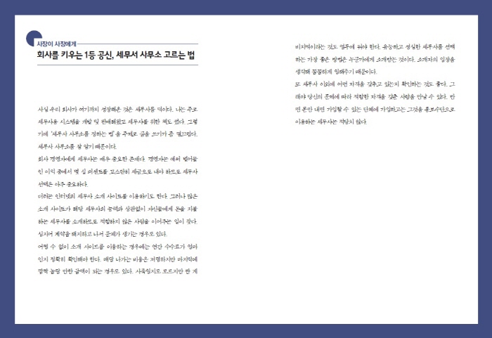 Àú¼·Î´Â ¡¶»õ·Î¿î ¼¼¹«»ç»ç¹«¼Ò¸¦ ¸¸µå´Â ¹ý¡·¡¶°øÈ²¿¡ ´ëºñÇØ Áö±Ý ÇØ¾ß ÇÒ ÀÏ¡·¡¶ÀÛÀº ȸ»ç »çÀåÀÇ Àü·«¡· µîÀÌ ÀÖ´Ù.