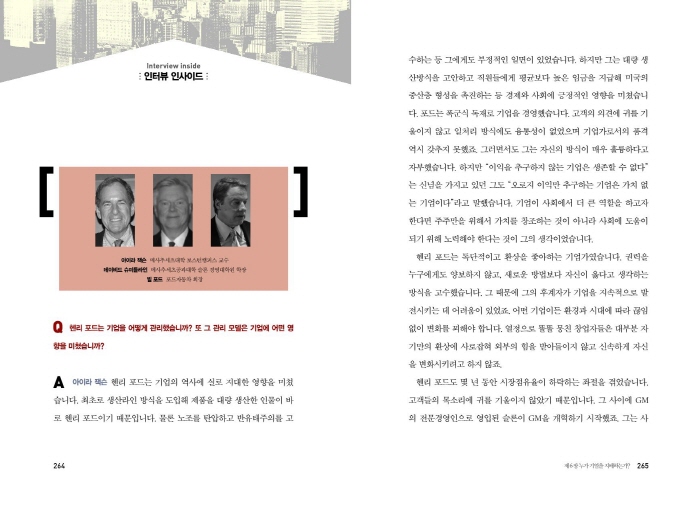 ±â¾÷ÀÌ °É¾î¿Â ±æÀº °ð ¼¼°è Çö´ëÈÀÇ °úÁ¤À̾ú´Ù. ÀÌ´Â ±¹°¡ °£ÀÇ °æÀï°ú °¢ÃàÀ¸·Î Á¡Ã¶µÈ ¿ª»çÀ̸ç Àηù¿¡°Ô Àڱ⠼ºÂû°ú Àç¹ß°ßÀ̶ó´Â °úÁ¦¸¦ ³²°å´Ù. ½ÃÀåÀÌ Àֱ⿡ ±â¾÷Àº °è¼Ó âÁ¶ÇÏ°í ²ÞÀ» ²Ù¾úÀ¸¸ç Á¸Áß°ú °â¼ÕÀ» ¹è¿ü´Ù. ±â¾÷Àº ÀÌÀÍÀ» ã¾Æ ¼¼°èÀûÀÎ °æÀïÀ» ¹úÀ̰í ÀÖÁö¸¸ ¾î´À °÷¿¡ ÀÖµç ÀηùÀÇ ÀÌ»óÀûÀÎ »ýȰ¿¡ ºÎÇÕÇÏ´Â °¡Ä¡¸¦ âÁ¶Çؾ߸¸ ¹Ì·¡ÀÇ ½ÂÀÚ°¡ µÉ ¼ö ÀÖ´Ù. °¥µî°ú ±âȸ, Çù·Â°ú ÀÌ°ß µî ¿©·¯ °¡Áö º¹ÀâÇÑ »óȲ¿¡ ³õÀÎ ±â¾÷ÀÌ ÃÖÁ¾ÀûÀ¸·Î ¾î¶² ¹æÇâÀ» ÇâÇØ ³ª¾Æ°¥Áö´Â ¾Æ¹«µµ ´Ü¾ðÇÒ ¼ö ¾ø´Ù. ÇÏÁö¸¸ ¿ª»ç´Â µÚµ¹¾Æº¸Áö ¾ÊÀ¸¸ç ¿À·ÎÁö ¾ÕÀ¸·Î¸¸ ³ª¾Æ°£´Ù´Â °ÍÀº ºÐ¸íÇÏ´Ù. ºÎ¿Í ±Ç·Â, °úÇбâ¼ú, ¹®È µîÀÌ ÇÔ²² ÀÛ¿ëÇØ ±â¾÷ÀÇ ÀáÀç´É·ÂÀ» ¾ó¸¶³ª ´õ À̲ø¾î³¾ ¼ö ÀÖÀ»Áö´Â ¿¹ÃøÇÒ ¼ö ¾ø´Ù. ¿ì¸®°¡ ¾Ë ¼ö ÀÖ´Â °ÍÀº ¹Ì·¡´Â ¾ðÁ¦³ª »ó»ó ±× ÀÌ»óÀÇ °ÍÀ» º¸¿©Áشٴ »ç½Ç»ÓÀÌ´Ù. _ p.432