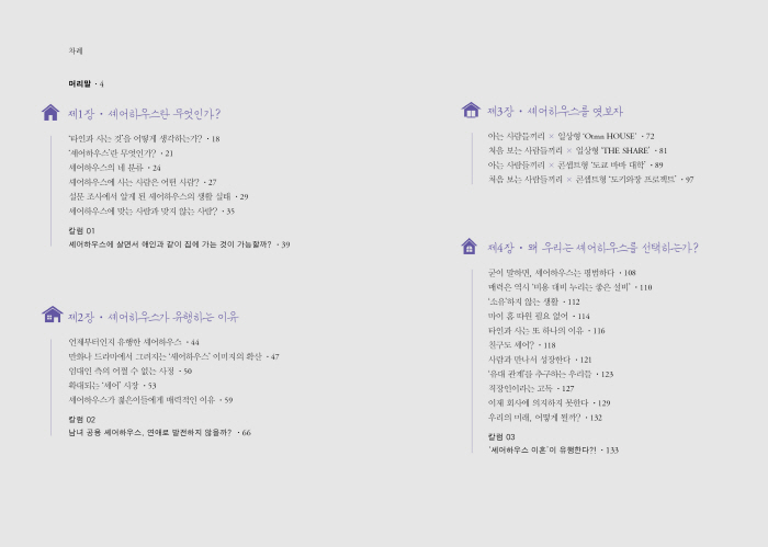 ¡®ÄÄ ¸ð¸®¡¯´Â 20°¡±¸ ÀÌ»óÀÌ ÇÑ °ø°£¿¡ ¸ð¿©¼ »ç´Â ¡®Ä÷ºÆ¼ºê ÇϿ콺¡¯ ÇüÅ´Ù. ÀÎÅͺ信µµ ³ª¿ÀÁö¸¸ Ä÷ºÆ¼ºê ÇϿ콺´Â ½º¿þµ§, µ§¸¶Å©, ³×´ú¶õµå µî¿¡¼ 1970³â´ë ¹«·ÆºÎÅÍ Çü¼ºµÈ º¹¼ö °¡±¸ÀÇ °øµ¿»ýȰÀ» ±âº»À¸·Î ÇÑ ÁְŸ¦ °¡¸®Å²´Ù. ºÏÀ¯·´¿¡¼ ¿©¼ºÀÇ »çȸ ÁøÃâÀÌ È°¹ßÇØÁö¸é¼ ¼·Î Áý¾ÈÀϰú À°¾Æ¸¦ µ½±â À§ÇÑ ¶óÀÌÇÁ ½ºÅ¸ÀÏÀ» ¸ð»öÇÏ´Ù°¡ ź»ýµÇ¾ú´Ù. ¼·Î ºÎ´ãÀ» ÁÙÀ̱â À§Çؼ °ÅÁÖÀÚ°¡ ¹ø°¥¾Æ °¡¸ç ½Ä»ç Áغñ¸¦ ÇÏ´Â ¡®ÄÚ¸Õ ¹Ð¡¯ µî ½Ä»ç¿Í û¼Ò µîÀ» °øµ¿À¸·Î Çϴ Ư¡ÀÌ ÀÖ´Ù. ¡®ÄÄ ¸ð¸®¡¯¿¡¼´Â À°¾Æ ¼¼´ë¸¸ÀÌ ¾Æ´Ï¶ó 20´ëÀÇ µ¶½ÅÀÚºÎÅÍ ³ë³âÃþ¿¡ À̸£±â±îÁö ²Ï Æø³ÐÀº ¿¬·É´ëÀÇ »ç¶÷µéÀÌ ¸ð¿© »ì°í ÀÖ´Ù.