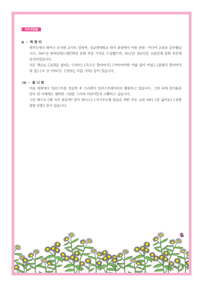 (1969.00.00)Á¦ÁÖµµ¿¡¼ ž ¼º±Õ°ü´ëÇб³ ¹Ú»ç °úÁ¤À¸·Î ¾Æµ¿ ¹®ÇС¤¹Ìµð¾î ±³À°À» °øºÎÇß½À´Ï´Ù. ±¹¸³Çѱ¹°æÁøÇб³¿¡¼ À¯Ä¡¿ø ¾ÆÀ̵éÀ» °¡¸£Ä¡°í ÀÖÀ¸¸ç, ¼º±Õ°ü´ëÇб³¿¡¼ ±×¸²Ã¥ âÀÛÀ» °ÀÇÇϰí ÀÖ½À´Ï´Ù. ±×¸²Ã¥À» ¸¸µé°í, ¹Ý·Á°ß ¹Ì¼Ò¿Í »êÃ¥ÇÏ´Â ÀÏÀ» ÁÁ¾ÆÇÕ´Ï´Ù. ÁöÀº Ã¥À¸·Î ¡ºµµ¼°ü¿¡¼ ¸¸³ ÇØ¸®¡»¡º½º½º·Î °¡Á·¡»¡ºÄÚ³¢¸® ¼Ä¿½º¡»¡ºÃÊ¿øÀ» ´Þ¸®´Â ¼öÇǾơ»¡º¿Á¼ö¼ö ÇҾƹöÁö¡»¡º¾î¸¶¾î¸¶ÇÑ ¿©´ü »ìÀÇ ºñ¹Ð¡»¡ºµÎ ¼¶ À̾߱⡻ µîÀÌ ÀÖ½À´Ï´Ù .