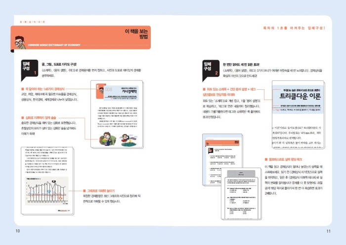 ÀÌ Ã¥Àº ¸¶³É ½¬¿î ³»¿ë¸¸ ¸»ÇÏÁö ¾Ê´Â´Ù. °æÁ¦»ó½Ä, ±ÝÀ¶»ó½Ä, Çѱ¹°æÁ¦, ¼¼°è°æÁ¦ 4°¡Áö ÁÖÁ¦·Î Á¤¸®ÇÑ 146°³ÀÇ °æÁ¦»ó½ÄÀº Ãʺ¸ÀÚ¿¡°Ô´Â ´Ù¼Ò ¾î·Á¿î ºÎºÐµµ ÀÖ´Ù. ±×·¯³ª À§Æ® ÀÖ´Â <¼ÒÁ¦¸ñ>, ÇÑ ÁÙ <¿ë¾î¼³¸í>, ¿¬°ü ³»¿ë±îÁö Á¤¸®ÇÑ <ű×>ÀÇ 3´Ü ±¸¼ºÀº 1¹ø¸¸ Àо 3¹ø ÀÐÀº È¿°ú¸¦ ÁÖ¸ç, ³»¿ëÀÌ °¡¹°°¡¹°ÇÒ ¶§ ÅÂ±×¿Í ¼ÒÁ¦¸ñ¸¸ ÈȾîºÁµµ È¿°ú ¸¸Á¡ÀÌ´Ù. °æÁ¦¿¡ ´ëÇÑ Áö½ÄÀº ÀÖÁö¸¸, ±× Áö½ÄÀÌ Èð¾îÁ® ÀÖ´Â Áß±ÞÀÚ¿¡°Ôµµ ÇÙ½ÉÁ¤¸®·Î À¯¿ëÇÏ´Ù.