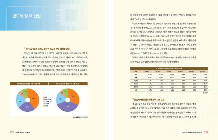 2014³â Àü ¼¼°è ¹ÝµµÃ¼ »ê¾÷ ±Ô¸ð´Â 3330¾ï ´Þ·¯·Î Àü³â ´ëºñ 9% ¼ºÀåÇÑ °ÍÀ¸·Î º¸ÀδÙ. ¹ÝµµÃ¼ »ê¾÷ÀÇ °æ±â »ó½ÂÀº 2013³â ÇϹݱâºÎÅÍ ½ÃÀ۵Ǿú´Âµ¥, 2015³â¿¡µµ ȣȲÀÌ Áö¼ÓµÉ °ÍÀ¸·Î ¿¹»óÇÑ´Ù. 2014³â »ê¾÷ °æ±â°¡ ÁÁ¾Ò´ø ÀÌÀ¯´Â Àü¹æ ½ÃÀå ±¸Á¶¿¡ º¯È°¡ ÀÖ¾ú°í ÃÖ±Ù ¸î ³â°£ Á¦Ç° °¡°ÝÀÌ Æò±ÕÀûÀ¸·Î ÀλóµÇ¾ú±â ¶§¹®ÀÌ´Ù. ½º¸¶Æ®ÆùÀ¸·Î ´ëÇ¥µÇ´Â Åë½ÅÀåºñ ¼ö¿ä´Â ÀÌ¹Ì PC ½ÃÀåÀ» ÃʰúÇß´Ù. 2008~2013³â »çÀÌ ½Å±Ô »ý»ê·® Áõ°¡°¡ ÀûÀº °Í ¿ª½Ã ¼ö±Þ °³¼±¿¡ Å« ÈûÀÌ µÇ¾ú´Ù. Èï¾÷Áõ±Ç¿¡ µû¸£¸é 2015³â Àü ¼¼°è ¹ÝµµÃ¼ »ê¾÷ ±Ô¸ð´Â 3560¾ï ´Þ·¯·Î Àü³â ´ëºñ 7%°¡ ´Ã °ÍÀ¸·Î ¿¹ÃøµÈ´Ù.(Áß·«) »þ¿À¹Ì¿Í ·¹³ëº¸, È¿þÀÌ µî Áß±¹ 3´ë ½º¸¶Æ®Æù ºê·£µåÀÇ Àü ¼¼°è ½ÃÀåÁ¡À¯À²Àº ¾à 15%À̸ç ÄðÆÐµå, ZTE(ÁßÈïÅë½Å) µîÀÇ ±âŸ ºê·£µå±îÁö ÇÕÄ¡¸é ÀÌ ¼öÄ¡´Â 25%¸¦ ³Ñ´Â´Ù.(132~135ÂÊ)