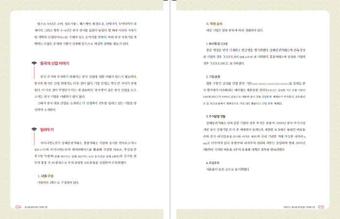 Áß±¹ ÇöÁö »çÁ¤¿¡ Á¤ÅëÇÑ ¸®¼Ä¡¹ýÀÎÀÌ Áß±¹º»Åä ÁÖ½Ä ½ÃÀåÀÇ Æ¯¼º°ú À¯¸ÁÇÑ ÅõÀÚ±âȸ¿¡ ´ëÇØ »ê¾÷º°·Î Á¤¸®ÇÑ Ã¥ÀÌ´Ù. Çѱ¹ ÅõÀÚÀÚµéÀÌ ÀÌ Ã¥À» ÅëÇØ Áß±¹ °æÁ¦ÀÇ È帧À» ²ç¶Õ°í Á¤º¸ÀÇ ¿Á¼®À» °¡·Á ¼º°øÀûÀÎ Áß±¹ ÁÖ½Ä ÅõÀÚÀÇ ÁöħÀ» È®¸³ÇÏ±æ ±â¿øÇÑ´Ù.