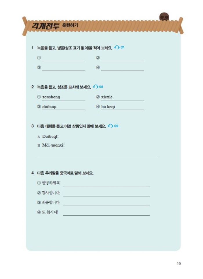 Áß±¹¾î ¼¼°è¿¡ ÀÔ¹®ÇÏ´Â µ¥ ²À ¾Ë¾Æ¾ß ÇÒ ±âº» Ç¥ÇöÀÌ¸ç ±âÃÊ È¸ÈÀÔ´Ï´Ù. ¿À¸¥ÂÊ¿¡ ¼ºÁ¶¸¦ ±×¸²À¸·Î º¸¿©ÁÜÀ¸·Î½á Áß±¹¾îÀÇ À½°¨À» ´«À¸·Î ÀÍÈú ¼ö ÀÖµµ·Ï ÇÏ¿´½À´Ï´Ù. ÇÑÀÚ, º´À½ ¾Æ·¡ÂÊ¿¡´Â Áß±¹¾îÀÇ ÇÑ±Û µ¶À½À» ´Þ¾Æ óÀ½ Áß±¹¾î ¹ßÀ½À» ÀÍÈ÷´Â µ¥ µµ¿òÀÌ µÇµµ·Ï ÇÏ¿´½À´Ï´Ù.