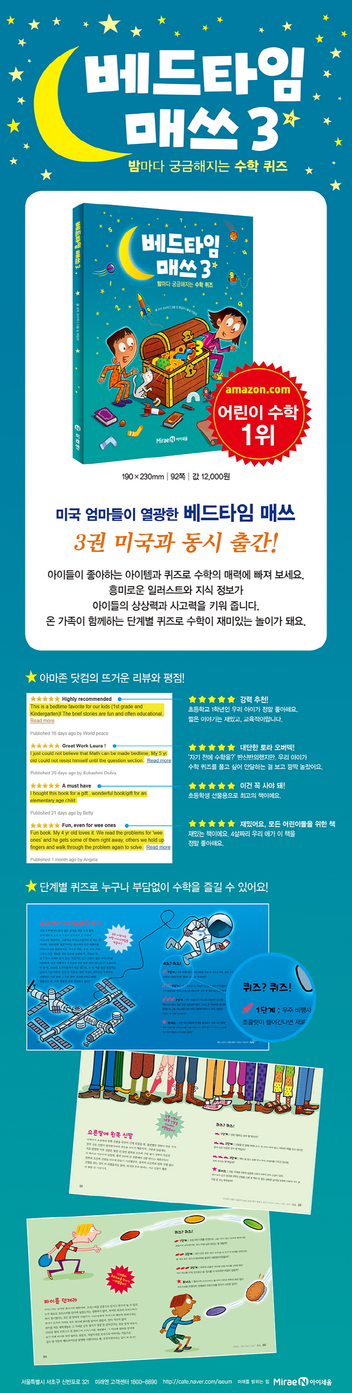 ¡¶º£µåŸÀÓ ¸Å¾²¡·´Â ºÎ¸ð¿Í Àڳడ ÇÔ²² ÀÐÀ¸¸é¼ ¼öÇÐÀÇ Àç¹Ì¸¦ ã¾Æ°¡µµ·Ï ¼³°èµÈ °ÍÀÌ °¡Àå Å« ÀåÁ¡ÀÔ´Ï´Ù. ÄûÁî°¡ ¼¼ ´Ü°è·Î ±¸ºÐµÇ¾î ÀÖ¾î ¾ÆÀÌÀÇ ´É·Â°ú ¿¬·É´ë¿¡ ¸Â´Â ¹®Á¦¸¦ ÀÚÀ²ÀûÀ¸·Î ¼±ÅÃÇÏ¿© Ç® ¼ö ÀÖ´Â °Íµµ ¸Å·ÂÀûÀÔ´Ï´Ù. Á¶½ÉÇÒ °ÍÀº, ¾ÆÀ̰¡ ÀçÃË ¹Þ´Â ´À³¦À» Á־ Àý´ë·Î ¾È µÈ´Ù´Â °ÍÀÔ´Ï´Ù. ÀÌ Ã¥ÀÇ Àǵµ´Â ¼öÇÐÀ» ¡®Àç¹ÌÀÖ°í Æí¾ÈÇÑ¡¯ »óȲ¿¡¼ À̾߱âåó·³ ¡®Áñ±â°Ô¡¯ ÇÏ´Â °ÍÀÔ´Ï´Ù.