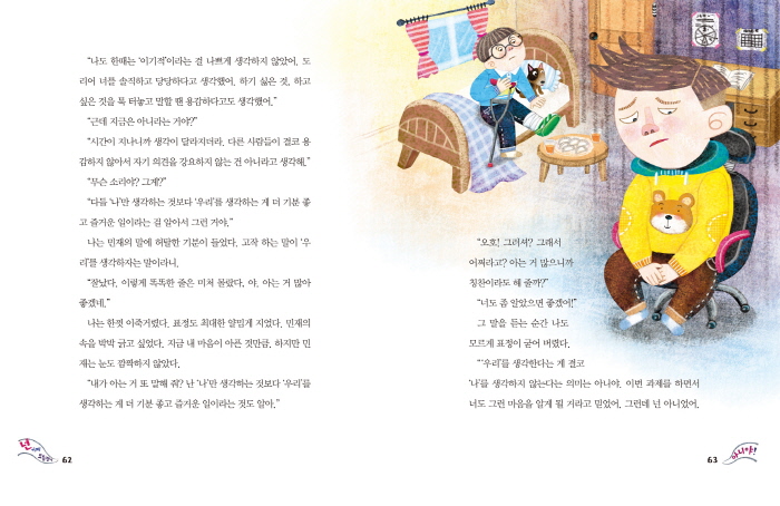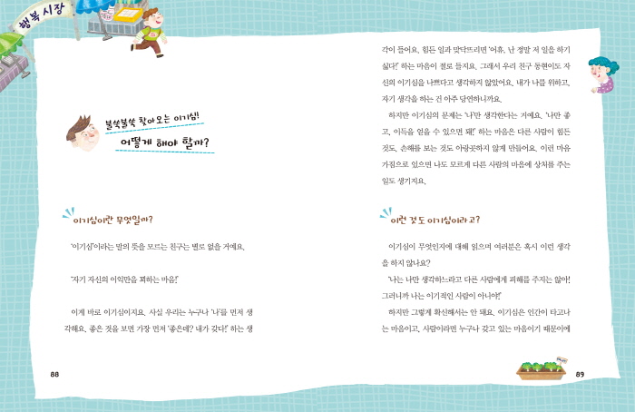 ¡¶³»°¡ À̱âÀûÀ̶ó°í?!¡·´Â ¾î¸°ÀÌ Ä£±¸µé¿¡°Ô ´õºÒ¾î »ç´Â »çȸ¿¡¼ ÀÚ±âÁß½ÉÀûÀÎ ¸¶À½°ú »ç°í¸¦ ¾î¶»°Ô ÇÑ ´Ü°è ´õ ¼ºÀå½Ã۰í, ÀÌŸ½ÉÀ» ±â¸¦Áö¸¦ ¾Ë·ÁÁÖ´Â »ý°¢ µ¿ÈÃ¥ÀÌ´Ù. ³ª¿¡¼ ÇÑ ´Ü°è ´õ ³ª¾Æ°¡ ¡®¿ì¸®¡¯·Î ½Ã¾ß¸¦ ³ÐÈ÷°Ô µÇ¸é °ú¿¬ ¹«¾ùÀÌ ´Þ¶óÁú±î? °æÀïÀûÀÎ ±³À°È¯°æ¿¡¼ ³ª Áß½ÉÀûÀÎ »ý°¢¿¡ ¸Ó¹«¸£±â ½¬¿î ¾î¸°ÀÌ Ä£±¸µé¿¡°Ô ¡®³ª¡¯¿¡¼ ¡®¿ì¸®¡¯·Î »ç°í¸¦ È®ÀåÇÏ´Â °ÍÀº »ý°¢º¸´Ù ½±Áö ¾Ê´Ù. ÀÌ Ã¥Àº ¸¶À½¿¡¼ ¿ì·¯³ª¿À´Â ¹è·Á¿Í ¾çº¸º¸´Ù´Â ¡®Çü½Ä¡¯¿¡¸¸ ±Þ±ÞÇϱ⠽¬¿î Çö½Ç¿¡¼, ¾î¸°ÀÌ Ä£±¸µé ¸¶À½¼Ó À̱â½É¿¡ ´ëÇØ ÇÑ ¹ø ±íÀÌ ÀÖ°Ô »ý°¢Çغ¼ °ÍÀ» ±ÇÀ¯ÇÑ´Ù. ±×·Î ÀÎÇØ ´õ ÁÁÀº ¼ºÀåÀ» À̸£°Ô À̲ô´Â »ý°¢°Å¸®¸¦ ´øÁ®ÁØ´Ù. ´õ ³ª¾Æ°¡ ³ª¸¸Å ³²µµ ¼ÒÁßÇϸç, Á¸Áß ¾î¸° °ü°è¿Í ´ëȸ¦ Çϸç ÇÔ²² ´õ ÁÁÀº °á°ú¸¦ ¸¸µé¾î°¡´Â °úÁ¤°ú ±× Àǹ̿¡ ´ëÇØ À̾߱âÇØÁØ´Ù.