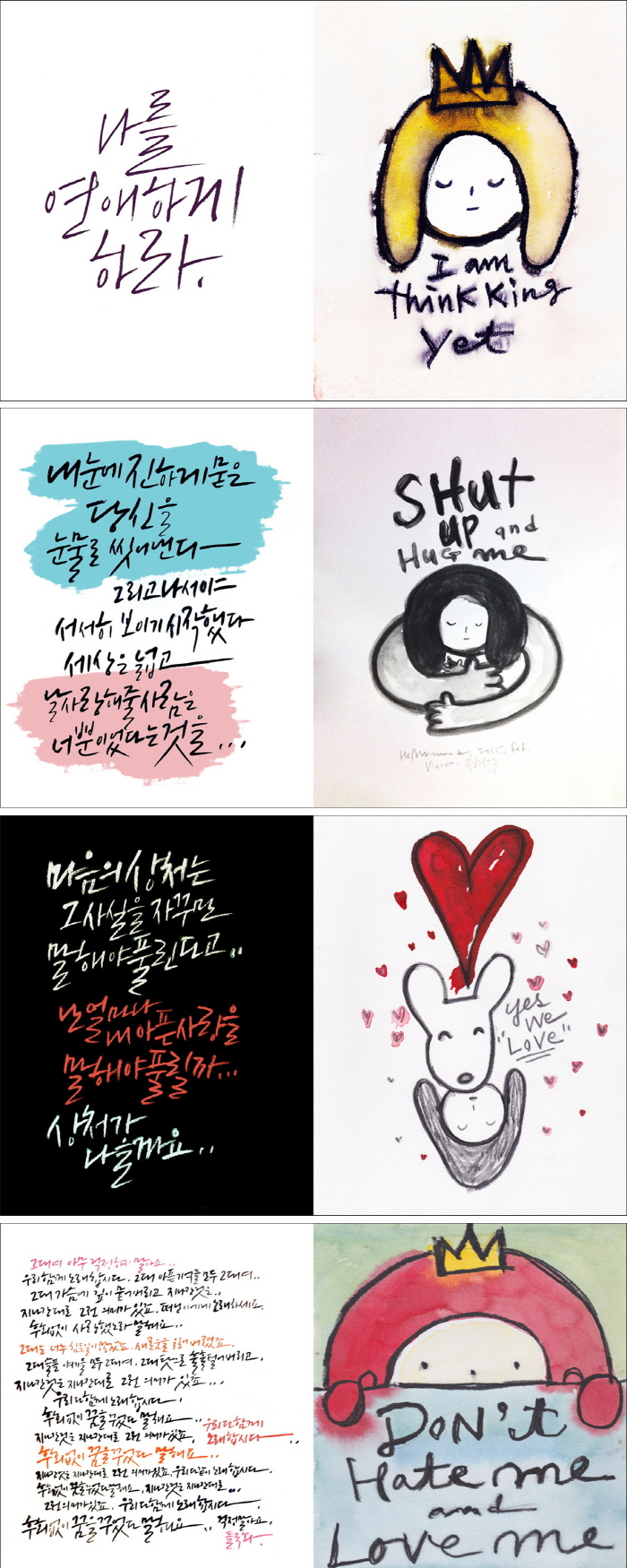 ÇÏ°í ½ÍÀº ÀÏÀº ²À ÇØºÁ¾ß Á÷¼ºÀÌ Ç®¸®´Â ¿å½É ¸¹°í Àڱ⠽ºÅ¸ÀÏ °íÁýÇÏ´Â »ç¶÷. ÇöÀç CF, ¾Ù¹ü ÀçŶ µðÀÚÀÎ, ÆÐŰÁö µðÀÚÀÎ µî ´Ù¾çÇÑ ¹æ¸é¿¡¼ Ȱµ¿ Áß. ±× ³ëÇϿ츦 ¸ð¾Æ ͏®±×¶óÇÇ¿¡ °ü½É ÀÖ´Â Çлýµé¿¡°Ô ¿Á¤ÀûÀ¸·Î °ÀÇ Áß. 2009³â ¹ß°£µÈ ù ¹øÂ° ¿¡¼¼ÀÌ¡´Àß Áö³»´Ï? ÇѶ§, ³ªÀÇ ÀüºÎ¿´´ø »ç¶÷¡µÀ» ÅëÇØ Çì¾îÁø ¿¬ÀÎÀÌ ÀÌ Ã¥ Çϳª·Î ´Ù½Ã ¸¸³ª°Ô µÇ¾ú´Ù´Â °¨µ¿ÀûÀÎ ¿¡ÇǼҵ尡 µÚ¸¦ À̾ú°í, µ¶ÀÚµéÀÇ Âù»ç¿Í ¿äûÀ¸·Î »ç¶û°ú À̺°¿¡ °üÇÑ µÎ ¹øÂ° °í¹é¡´ÀüÇÒ ¼ö ¾ø´Â À̾߱⡵¸¦ ¿Ï¼º, ±× ÈÄ »ç¶ûÀÇ ¼ø°£À» ¸ðÀº¡´»ç ¶û ¿¹½ÀÀ塵, ´õ ÀÌ»ó »ç¶û ¶§¹®¿¡ ¾ÆÇÁÁö ¾Ê°í ¿ïÁö ¾Ê±æ ¹Ù¶ó´Â ¸¶À½À¸·Î ½á³»·Á°£¡´¾î¶»°Ô »ç¶ûÀÌ ±×·¡¿ä¡µ·Î »ç¶û¿¡ ´ëÇÑ ´Ü»óÀ» ¸¶¹«¸®ÇÔ. ±× ¿Ü ´ÞÄÞÇÏÁö¸¸Àº ¾ÊÀº ûÃáÀ» À§·ÎÇÏ°í °Ý·ÁÇÏ´Â ¡´Ã»ÃáÆ÷Â÷ »ó´ã¼Ò¡µµµ ÁöÀº Ã¥¿¡ Æ÷ÇÔµÊ. ͏®±×¶óÇÇ¿¡ ´ëÇÑ °ÀǼ¡´¼Õ±Û¾¾ Àß ½á¼ ÁÁ°Ú´Ù¡µ, ¡´³ªµµ ¼Õ±Û¾¾ Àß ¾²¸é Á¤¸» ÁÁ°Ú´Ù¡µ´Â ͏®¿¡ ÀÔ¹®ÇÏ·Á´Â µ¶ÀÚ¿Í ÇöÀç ¹è¿ì°í ÀÖ´Â »ç¶÷¿¡°Ô±îÁö µÎ·çµÎ·ç »ç¶û¹Þ°í ÀÖÀ½. ±×ÀÇ ¼Õ±Û¾¾¿Í ¶óÀÌÇÁ ½ºÅ¸ÀÏÀÌ ±Ã±ÝÇÏ´Ù¸é ÀνºÅ¸±×·¥(www.instagram.com/iamheartmond)À¸·Î, ±×ÀÇ ¼ö¾÷ÀÌ ±Ã±ÝÇÏ´Ù¸é ÇÏÆ®¸óµå(www. heartmond.com)·Î.
