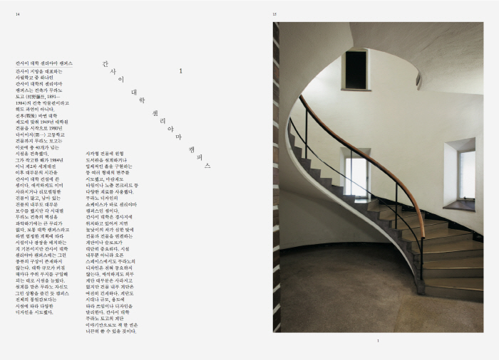 ³°£À» Àâ°í ½Åü ¸®µëÀ» °è´Ü¿¡ ¸ÂÃß¸ç ¹ßÀ» ³»µóÀ¸¸é ´«¾ÕÀÇ ½Ã¾ßµµ ¹Ù²ï´Ù. Å« ¿øÀ» ±×¸®´Â À¯¼±Çü °è´ÜÀº ¿ì¾ÆÇÑ ±âºÐ¿¡ Á¥°Ô ÇÏ°í ±â´ÉÀûÀÎ °è´ÜÀº ³ÃöÇÑ °¨Á¤À» ÀھƳ½´Ù. °¡·É, ¿µÈ°ü¿¡ ¼³Ä¡µÈ °è´ÜÀº ùÙÄû °°Àº Çö½ÇÀ» Å»ÃâÇÏ·Á´Â °ü°´µéÀ» ºñÀÏ»óÀÇ ¼¼°è·Î ÃÊ´ëÇÑ´Ù. °è´ÜÀ» ¼³°èÇÑ´Ù´Â °ÍÀº »ç¶÷ÀÇ ¿òÁ÷ÀÓ°ú °¨Á¤À» µðÀÚÀÎÇÏ´Â °Í°ú º»ÁúÀûÀ¸·Î ´Ù¸£Áö ¾Ê´Ù.
