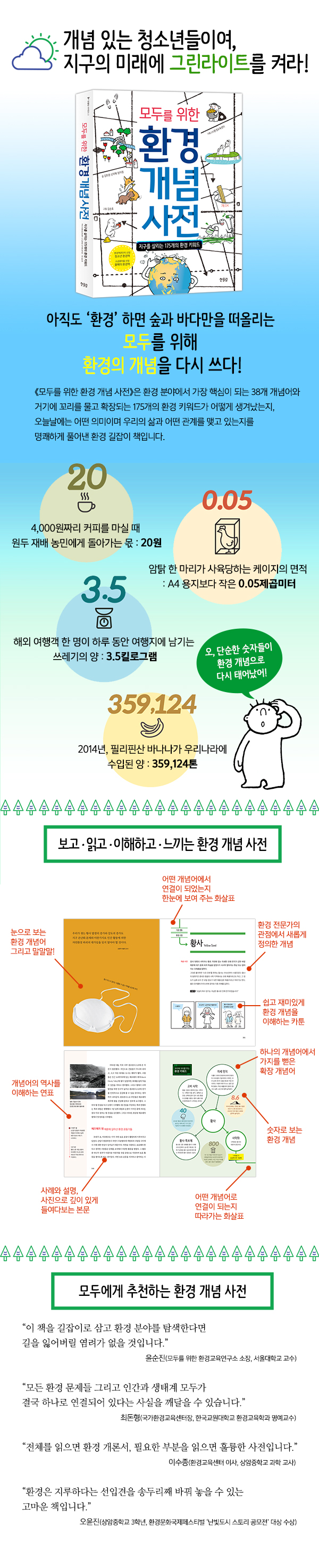 45ÁÖ³â Áö±¸ÀÇ ³¯¿¡ ù ¼±À» º¸ÀÌ´Â ¡¶¸ðµÎ¸¦ À§ÇÑ È¯°æ °³³ä »çÀü¡·Àº Á¦¸ñ ±×´ë·Î ¡®¸ðµÎ¸¦ À§ÇÑ¡¯ ȯ°æ ±æÀâÀÌ Ã¥ÀÌ´Ù. ³ª¿Í Áö±¸, Áö±¸ ¸¶À» »ç¶÷µé, ¹«¼öÇÑ »ý¸íµé ±×¸®°í ¾ÆÁ÷ žÁö ¾ÊÀº ¹Ì·¡ ¼¼´ë ¡®¸ðµÎ¡¯ÀÇ »îÀÌ ±â²¨ÀÌ Á¸Áß¹Þ°í ¾Æ¸§´Ù¿öÁú ¼ö ÀÖµµ·Ï ¡®°³³ä Àִ¡¯ û¼Ò³âµéÀÌ¿©, Áö±¸ÀÇ ¹Ì·¡¿¡ ±×¸°¶óÀÌÆ®¸¦ ÄÑÀÚ!