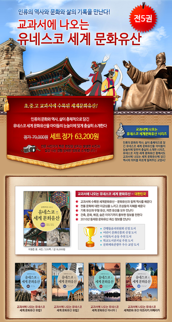 [Á¤°¡ÀÎÇÏ]±³°ú¼¿¡ ³ª¿À´Â À¯³×½ºÄÚ ¼¼°è ¹®ÈÀ¯»ê Àü5±Ç ¼¼Æ® 63,200¿ø (0%¡é+3%P)