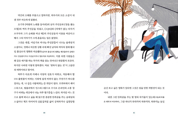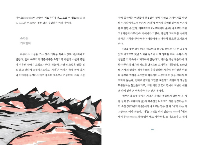 ÇÏ·çŰ´Â ¹®Çп¡¼ À½¾ÇÀÇ È¿¿ëÀ» ¸»ÇÏ¸ç µ¶ÀÚµéÀÌ Àо°¡´Â ±ÛÀÇ ¸®µëÀ» Áß½ÃÇÑ´Ù. ¡¶¼¼°èÀÇ ³¡°ú Çϵ庸ÀÏµå ¿øµå·£µå¡·¶õ ÀÛǰÀº °Å´ëÇÑ ´ëÀ§¹ý°ú °°´Ù. ħ¹¬°ú Àû¿ä, ÇÞºûÀÌ ºñÄ¡Áö ¾Ê´Â Èæ¹éÀÇ ¡®¼¼°èÀÇ ³¡¡¯Àº ¿Â°® ¸ðÇèÀÌ Ä÷¯Ç®ÇÏ°Ô ÆîÃÄÁö´Â ¡®Çϵ庸ÀÏµå ¿ø´õ·£µå¡¯ÀÇ ¹Ù¼Ò ÄÜÆ¼´©¿À À§ÀÇ ÇÕÁֿ͵µ °°´Ù.