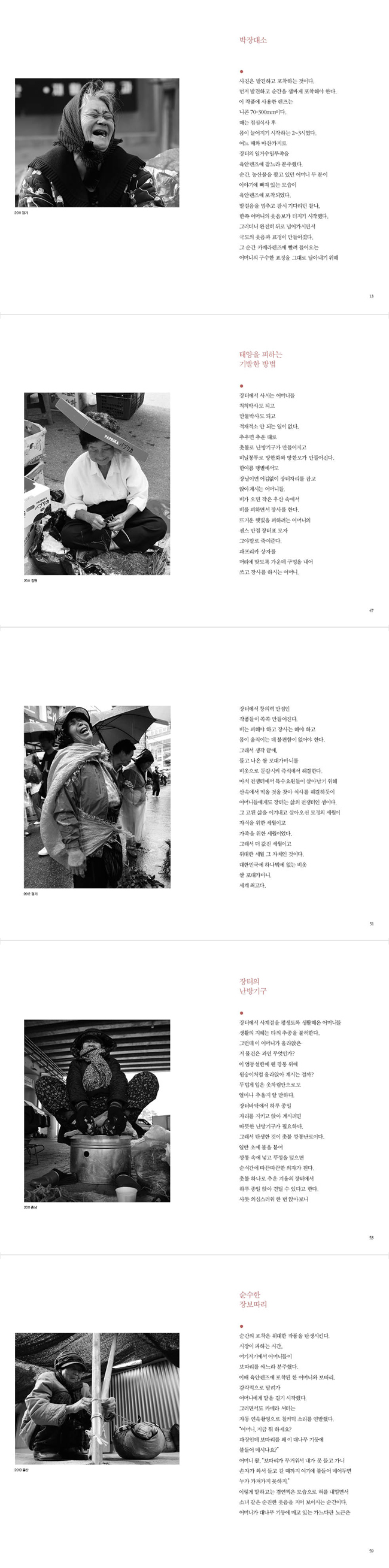 (1961.00.00)1961³â ´Ê°¡À» °æ±âµµ °í¾ç½Ã ´ö¾ç±¸ ³»À¯µ¿ ½Ã°ñ¸¶À»¿¡¼ 5ÇüÁ¦ Áß 5³²À¸·Î ž´Ù. ¼¼»ó¿¡ ž¼ óÀ½À¸·Î ÀÛǰ Ä«¸Þ¶ó¸¦ ¼Õ¿¡ Áã¾îº» °í±³ 2³â¿¡ »çÁø¿¡ ¸Å·áµÇ¾î ÇÁ·ÎÀÛ°¡¿¡°Ô¼ »çÁøÀ» ¹è¿ì±â ½ÃÀÛÇß´Ù. ÇÏÁö¸¸ ½Ã°ñ ³óºÎÀÇ ¾Æµé·Î ÅÂ¾î³ ÀÌÀ¯·Î °æÁ¦ÀûÀÎ ¸éÀ» ±Øº¹ÇÏÁö ¸øÇÏ°í »çÁø°¡·Î¼ÀÇ ²ÞÀ» Á¢¾î¾ß Çß´Ù. ±×·¸°Ô ´Ù¸¥ ±æÀ» °È°í ÀÖ´Â ¿ÍÁß¿¡ ¾î´À ³¯ºÎÅÍÀΰ¡ µðÁöÅÐÄ«¸Þ¶ó°¡ ´ëÁßȵǾú´Ù. Çʸ§Ä«¸Þ¶ó ½Ã´ë¿¡ »çÁøÀ» ¹è¿î ÇÑ »ç¶÷À¸·Î¼ ½Å¼±ÇÑ Ãæ°ÝÀ» ¹Þ¾Ò´Ù. ¹Ù·Î ±×¶§ ¿¾³¯ »çÁø °ø¸ðÀü¿¡¼ ¼ö»óÀ» Çϱ⵵ Çß´ø, ²ÞÀ» Ű¿ì´ø ÇÐâ½ÃÀýÀÇ ±â¾ïÀÌ »õ·Ï»õ·Ï »ý°¢³µ´Ù. ±×¶§ºÎÅÍ µðÁöÅÐÄ«¸Þ¶ó¸¦ ´Ù½Ã ¼Õ¿¡ Áã°Ô µÇ¾ú°í, ´Ù½Ã Ä«¸Þ¶ó¸¦ ÀâÀº ÀÌ»ó ¹«¾ð°¡ »çȸ¿¡ À̹ÙÁöÇÏ°í µµ¿òÀÌ µÇ´Â »ý»êÀûÀÎ ÀÛ¾÷À» ÇØ¾ß°Ú´Ù´Â °í¹ÎÀ» Çß´Ù. ±× °á°ú »ç¶óÁö°í ÀÖ´Â ´ëÇѹα¹ÀÇ 5ÀÏ ÀåÅ͸¦ ±â·ÏÇϰí ÀÛǰÀ¸·Î ¸¸µé¾î Ã¥À» ÅëÇØ ¼¼»ó¿¡ ¾Ë¸®°í û¼Ò³âµé¿¡°Ô ±³À°À» ½ÃÄÑ¾ß°Ú´Ù°í ¸¶À½À» ¸Ô¾ú´Ù. 2008³â ¸»ºÎÅÍ º»°ÝÀûÀ¸·Î ´ëÇѹα¹ÀÇ 5ÀÏ ÀåÅ͸¦ ±¸¼®±¸¼® ã¾Æ´Ù´Ï¸ç ÃëÀçÇϰí ÃÔ¿µ ÀÛ¾÷À» °è¼Ó ÁøÇàÇϰí ÀÖ´Ù. °í±³½ÃÀý ¼Õ¿¡¼ Ä«¸Þ¶ó¸¦ ³õÀº µÚ 34³â ¸¸¿¡ »çÁøÁý ¡¶ÀåÅÍ1 ¸ðÁ¤ÀÇ ¼¼¿ù(2012)¡·À» Ãâ°£ÇÏ¸é¼ ÀåÅ͸¦ Àü¹®À¸·Î ÇÏ´Â Àåµ¹¹ðÀÌ ´ÙÅ¥¸àÅ͸® »çÁø°¡·Î °Åµì³ª±â ½ÃÀÛÇß´Ù. ±× ÈÄ·Î ¡¶ÀåÅÍ2 ÀåÀÎÁ¤½Å(2013)¡· ¡¶ÀåÅÍ3 Èñ·Î¾Ö¶ô(2014)¡·À» ¹ßÇ¥Çß´Ù. ¶ÇÇÑ ±³À°À» ¸ñÇ¥·Î ÇÏ´Â Áß°í±³ ¹æ¹® ¼øÈ¸Àü½Ãµµ 2013³â 11¿ù 18ÀϺÎÅÍ ¸Å °ÝÁÖ·Î ÇÑ ¹øµµ ½¬Áö ¾Ê°í ÁøÇàÇÏ¿© 43ȸÀü(2015³â 8¿ù ÇöÀç) ÁßÀÌ´Ù. ÀÌ·¯ÇÑ Àû±ØÀûÀΠȰµ¿À» ¹æ¼Û(KBS1/ KBS2/ MBC/ WBCº¹ÁöTV/ ÀÎõº¹Áö¹æ¼Û/ ÀÎõƼºê·Î¹æ¼Û µî ¹®È°ü·Ã ¹æ¼Û 15ȸ Ã⿬ ¹× º¸µµ)°ú ½Å¹®(±¹Á¦½Å¹®/ ±âÈ£ÀϺ¸/ ºÎ»êÀϺ¸/ µ¿¾ÆÀϺ¸/ ÇѰܷ¹½Å¹®/ ¿¬ÇÕ´º½º/ ¾ÆÁÖ°æÁ¦½Å¹®/ ÀÎõÀϺ¸/ ±³À°¿¬ÇսŹ®/ ¼¿ï½Å¹® µî 27°³ ½Å¹®¿¡ º¸µµ)¿¡¼µµ ÁÁÀº ³»¿ëÀ¸·Î Àû±Ø È«º¸¸¦ ÇØÁÖ°í ÀÖ´Ù. Áö±ÝÀº ¿ù°£ PHOTO+¿¡¼ ¸Å¿ù ¡®´ëÇѹα¹ ÀåÅÍ À̾߱⡯¶ó´Â ÁÖÁ¦·Î Ä®·³(2014³â 10¿ùÈ£ºÎÅÍ ÇöÀç)À» ¾²°í ÀÖ´Ù. <ºÎ»êÀϺ¸>¿¡µµ ¡®ÀåÅÍ »ç¶÷µé¡¯À» ÁÖÁ¦·Î ¸ÅÁÖ ¿ù¿äÀÏ¿¡ ±ÛÀ» ¿¬Àç(2015³â 1¿ùºÎÅÍ ÇöÀç)Çϰí ÀÖ´Ù. ´ëÇѹα¹ÀÇ 5ÀÏ ÀåÅÍ´Â 600¿© °³°¡ ÀÖ´Â °ÍÀ¸·Î ÃßÁ¤µÇ³ª ¾ø¾îÁø ÀåÅͰ¡ ¸¹¾Æ 530¿© °³ÀÇ ÀåÅͰ¡ ³²¾Æ ÀÖ´Â °ÍÀ¸·Î ¿¹ÃøµÈ´Ù. ´ëÇÐ(°æ³²Á¤º¸´ëÇб³)¿¡¼ ÀϺ»¾î¸¦ °¡¸£Ä¡°í ÀÖ´Â ÀúÀÚ´Â Çбâ Áß¿¡´Â ÁÖ¸»À» ÀÌ¿ëÇÏ°í ¹æÇп¡´Â ÀüÀûÀ¸·Î 5ÀÏ ÀåÅ͸¦ Á¾È¾¹«Áø ´©ºñ°í ´Ù³æ´Ù. ¾ÕÀ¸·Îµµ »ç¶óÁö°í ÀÖ´Â ¹®È¸¦ ´ã¾Æ³»°í Ã¥°ú Àü½Ã¸¦ ÅëÇØ¼ ¼¼»ó¿¡ ¶Ç´Â û¼Ò³âµé¿¡°Ô ¾Ë¸®´Â ÀÏÀ» °ÔÀ»¸® ÇÏÁö ¾ÊÀ» »ý°¢ÀÌ´Ù. »ç¸í°¨Àº Àִµ¥ ¿Á¤ÀÌ ½ÄÀ¸¸é ¾Æ¹« Àǹ̰¡ ¾ø´Â ÀÏÀ̱⿡ ±× ¿Á¤ÀÌ ½ÄÁö ¾Êµµ·Ï ÃÖ¼±À» ´ÙÇϰڴٴ ´ÙÁüÀÌ´Ù.