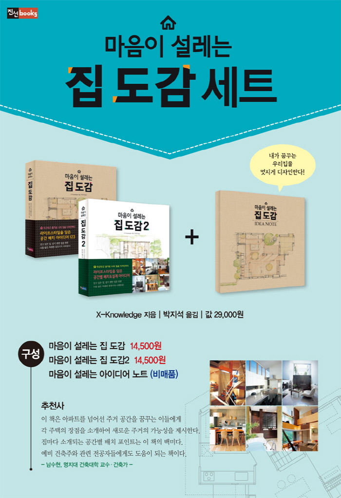 »ì°í ½ÍÀº Áý, »ì±â ÆíÇÑ ÁýÀ» À§ÇÑ ³ª¸¦ ´àÀº Ưº°ÇÑ ÁýÁþ±â°¡ ½ÃÀ۵ȴÙ! ¡¶¸¶À½ÀÌ ¼³·¹´Â Áý µµ°¨¡· 1±Ç¿¡¼ ¶óÀÌÇÁ½ºÅ¸ÀÏ¿¡ µû¸¥ 123°÷ ÁÖÅÃÀÇ °¢ Ãþº° °ø°£ ¹èÄ¡¿¡ ´ëÇØ »ìÆìºÃ´Ù¸é, 2±Ç¿¡¼´Â °Å½Ç, ÁÖ¹æ, ¿å½Ç, ħ½Ç, ¾ÆÀÌ ¹æ µî °ø°£º° ¹èÄ¡¿Í ¼³°è ¾ÆÀ̵ð¾î¸¦ ¼Ò°³ÇÑ´Ù. ¹«·Á 284°¡ÁöÀÇ ÁýÁþ±â ³ëÇϿ츦 »çÁø°ú µµ¸éÀ¸·Î ÀÚ¼¼È÷ ¼³¸íÇÑ ÄÞÆÑÆ®ÇÑ Áý µµ°¨ÀÌ´Ù.