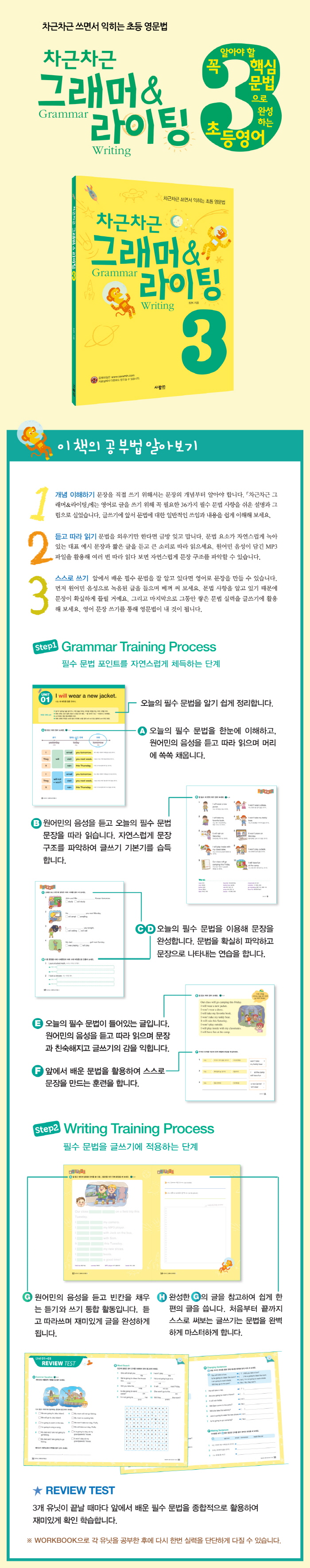 ÀÌ Ã¥Àº Â÷±ÙÂ÷±Ù ¾²¸é¼ ÀÍÈ÷´Â ÃÊµî ¿µ¹®¹ý Ã¥ÀÌ´Ù. dzºÎÇÑ ±×¸²°ú °£°áÇÑ ÇÙ½É ¼³¸íÀ¸·Î ½±°Ô ÀÌÇØÇÏ°Ô Çϰí, ½º½º·Î ¿µ¾î ¹®ÀåÀ» ¾²¸ç ¿µ¹®¹ý ¿ø¸®¸¦ ¾Ëµµ·Ï ÇØ È¿°úÀûÀÌ´Ù. <¿Ï¼ºµÈ ±Û Àо±â ¡æ ºóÄÀ» ä¿ö ±Û ¿Ï¼ºÇϱ⠡æ ÇÑ ÆíÀÇ ±ÛÀ» Á÷Á¢ ½áº¸±â>ÀÇ µè°í, ¸»Çϰí, Àаí, ¾²´Â ÇнÀ°úÁ¤Àº ¹è¿î °ÍÀ» ¹Ýº¹Çؼ Ȱ¿ëÇÒ ¼ö ÀÖ¾î ¿Ïº®ÇÑ ³» °ÍÀ¸·Î ¸¸µé¾î ÁØ´Ù.