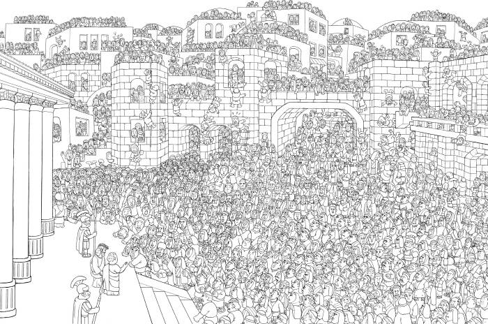 º»¼­´Â ÃÑ 3±ÇÀ¸·Î ±¸¼ºµÇ¾î ÀÖ´Ù. 1±Ç [âÁ¶ ±× ÀÌÈÄ]´Â »ý¸í·Â ³ÑÄ¡´Â ¿¡µ§µ¿»ê À̾߱â¿Í ³ë¾ÆÀÇ ¹æÁÖ, ¹Ùº§Å¾ »ç°Ç ±×¸®°í ¹ÏÀ½ÀÇ ¼±Á¶µé À̾߱â±îÁö, â¼¼±âÀÇ ÁÖ¿ä À̾߱âµéÀ» ¼±º°ÇÏ¿© °¢°¢ ¿­ Àå¸éÀ¸·Î ±¸¼ºÇß´Ù. 2±Ç [¿¹¼öÀÇ ½Ã°£]Àº ¿¹¼ö´ÔÀÇ Åº»ý°ú °ø»ý¾Ö Ȱµ¿ ±×¸®°í °ñ°í´Ù ¾ð´öÀÇ ½ÊÀÚ°¡ »ç°Ç±îÁö, »çº¹À½¼­¿¡ ±â·ÏµÈ ³»¿ëÀ» ¹ÙÅÁÀ¸·Î ¿¹¼ö´ÔÀÇ »ý¾Ö¿¡ »ó»ó·ÂÀ» µ¡ºÙ¿© Ä÷¯¸µ µµ¾ÈÀ» ±×·È´Ù. ¸¶Áö¸· 3±Ç [³²°ÜÁø ÀÚµé]Àº ¿¹¼ö´ÔÀÇ ºÎȰ°ú ½Âõ ÀÌÈÄ¿¡ ³²°ÜÁø, ±×¸¦ µû¸£´Â Á¦ÀÚµéÀÇ À̾߱⠿­ ÆíÀ» ½Ç°¨³ª´Â ±×¸²Ã¼·Î ½ºÄÉÄ¡Çß´Ù. ºÎ·Ï¿¡´Â »öÄ¥°øºÎ¸¦ Çϸ鼭 ¹¬»óÇÒ ¼ö Àִ ªÀº ¼º°æ À̾߱â¿Í ÇÔ²² ´ëÇü Ä÷¯¸µ µµ¾È 1ÀåÀ» »ðÀÔÇß´Ù.