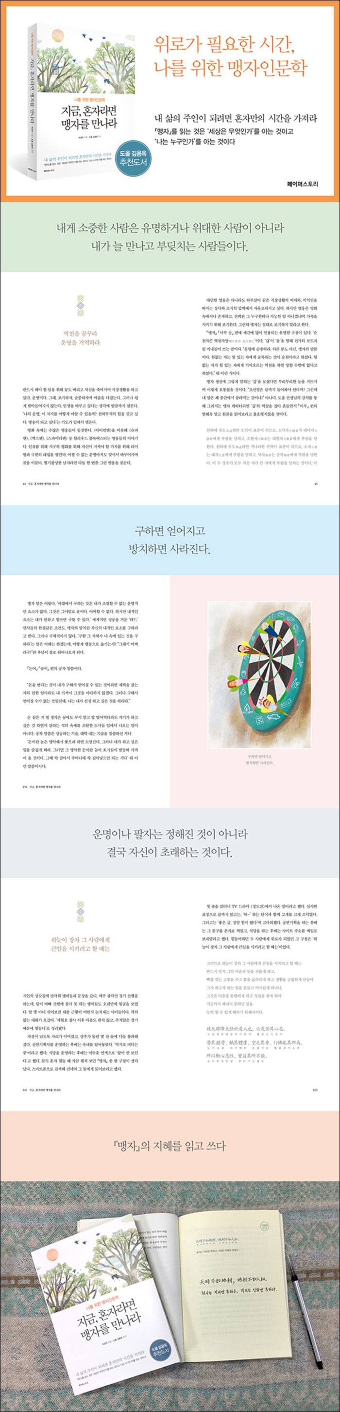 ¡º¸ÍÀÚ¡»´Â Àΰ£µÊÀÇ Ãâ¹ßÀÌ´Ù. »ç¶÷ÀÌ »ç¶÷ÀÌ µÇ±â À§Çؼ´Â ¡º¸ÍÀÚ¡»¶ó´Â ¼¹°(ßöÚª)¿¡ ´ã°Ü ÀÖ´Â ¸ÍÀÚÀÇ »ý°¢À» ±× Ãâ¹ßÁ¡À¸·Î »ï¾Æ¾ß ÇÑ´Ù´Â °ÍÀÌ´Ù. ±×·±µ¥ ±×°ÍÀº ¡º¸ÍÀÚ¡»¶ó´Â Ã¥À» ÀÐ¾î¼ ¾ò°Ô µÇ´Â ¡®Áö½Ä¡¯ÀÌ ¾Æ´Ï´Ù. ¡®³ª¡¯¶ó´Â Àΰ£À» °õ°õÀÌ µ¹ÀÌÄÑ º¸¸é ÀÎÁ¤ÇÏÁö ¾ÊÀ» ¼ö ¾ø´Â, ³»°¡ Àΰ£À̱⠶§¹®¿¡ ´À³¢Áö ¾ÊÀ» ¼ö ¾ø´Â ÃÖ¼ÒÇÑÀÇ °øÅë°¨(Íì÷×Êï), ¹¹ ±×·± °ÍÀÌ´Ù. ±×°ÍÀº ¿ì¸®°¡ »ì¾Æ°¡¸é¼ ´À³¢´Â °¨Á¤ ¾È¿¡¼ ½º½º·Î, ÀúÀý·Î ¹ßÇöµÇ´Â °ÍÀÌ´Ù. º° »ý°¢ ¾øÀÌ Çª¸¥ ¹úÆÇÀ» ¾ÆÀ徯Àå °Å´Ï´Â ¾Æ±âµµ µ¹¸æÀ̳ª ½âÀº ³ª¹« Á¶°¢º¸´Ù´Â ²ÉÀ̳ª ³ªºñ¿Í °°Àº »ý¸íüÀÇ Á¤±³ÇÔ¿¡ ´õ È£±â½ÉÀ» º¸À̰ųª, ±×°ÍÀ» ´õ ±ÍÇÏ°Ô ¿©±â´Â ¼ºÇâÀÌ ÀÖ´Ù. »ý¸íÀ» »ç¶ûÇÏ´Â º»´ÉÀÌ Àΰ£ÀÇ ¿°»öü¿¡ ³»ÀçÇϸç, °á±¹ Àΰ£Àº ±×·¯ÇÑ °¨Á¤À» ÅëÇØ¼ °í±ÍÇÏ°Ô µÈ´Ù´Â °ÍÀ» ¼³ÆÄÇÑ »ý¹°ÇÐÀÚ Àª½¼ÀÇ ¡®¹ÙÀÌ¿ÀÇʸ®¾Æ¡¯µµ ¾Æ¸¶ ±× °°Àº Àΰ£ÀÇ Á¶°ÇÀ» ¸»Çϰí ÀÖÀ» °ÍÀÌ´Ù. ±×·¯ÇÑ °¨Á¤À» È®ÃæÇØ³ª°¡¸é Àú±â Àú ºÏÇѻ꿡 ¿ì¶Ò ¼ ÀÖ´Â ÀμöºÀ ¹ÙÀ§µµ °áÄÚ »ý¸íü°¡ ¾Æ´Ï¶ó°í ¸»ÇÒ ¼ö ¾ø´Ù. ³»°¡ ÀμöºÀÀ» ´À³¢°í, ÀμöºÀÀÌ ³ª¸¦ ´À³¢´Â ´À³¦ÀÇ È«·ù ¼Ó¿¡ ¿ì¸®°¡ ¸»ÇÏ´Â ¡®µµ´ö¡¯À̶ó´Â °ÍÀÌ ÀÖ´Ù. ÇϹ°¸ç Àΰ£°ú Àΰ£ »çÀÌ¿¡ ¿À°¡´Â ´À³¦ÀÌ¾ß »õ»ï ¸»ÇØ ¹«¾ùÇÏ·ª!