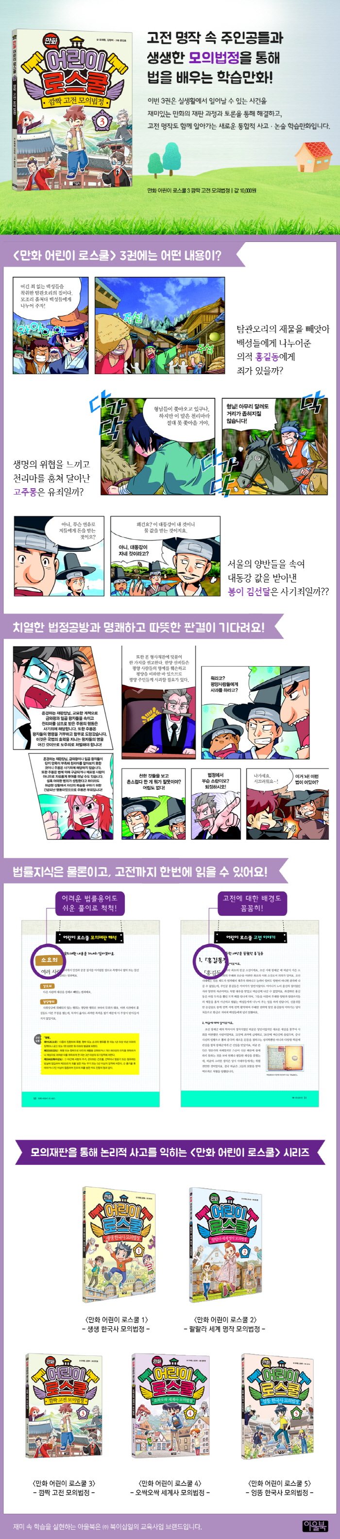 ¡º¸¸È ¾î¸°ÀÌ ·Î½ºÄð¡» ½Ã¸®Áî´Â Àç¹ÌÀÖ´Â ¸¸È·Î ÀçÆÇ À̾߱⸦ Áñ±â´Â µ¿¾È ÀúÀý·Î ³í¼ú Åä·Ð ½Ç·ÂÀÌ °ÇØÁö´Â ÇнÀ¸¸È ½Ã¸®ÁîÀÔ´Ï´Ù. Çѱ¹»ç, ¼¼°è»ç, ¿ì¸® °íÀü, ¼¼°è ¸íÀÛ ¼Ó Àι°µé°ú ÇÔ²² °¡»óÀÇ ¸ðÀǹýÁ¤À» ¿¾î, À¯¹«ÁË¿¡ ´ëÇØ ´Ù¾çÇÑ ÀǰßÀ» ³ª´©°í Á÷Á¢ °Ë»ç¿Í º¯È£»ç, ¹è½É¿øÀÌ µÇ¾î À̾߱⸦ Áñ±æ ¼ö ÀÖ½À´Ï´Ù. ¿ª»ç ¼Ó »ç°ÇÀ¸·Î Â÷¿ø À̵¿ÇÏ¿© »ý»ýÇÏ°Ô ÆîÃÄÁö´Â ¹ýÁ¤ üÇèÀ» ÅëÇØ ¹ýÁ¶ÀÎÀÇ ²Þ¿¡ ´Ù°¡°¡ º¸¼¼¿ä.