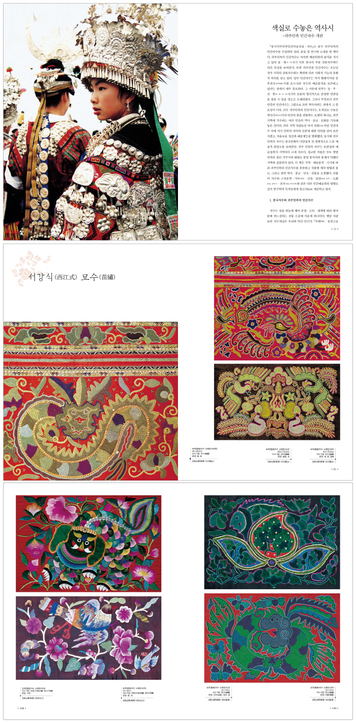 <Áß±¹ ±ÍÁÖ¹ÎÁ· ¹Î°£¹Ì¼úÀüÁý ÀÚ¼ö>´Â Áß±¹ ±ÍÁÖ¹ÎÁ·ÀÇ ¹Î°£ÀÚ¼ö¸¦ ¼öÁýÇÏ¿© Á¤¸®¿Í ºÐ·ù ¹× ¿¬±¸¿Í ¼Ò°³¸¦ ÇÑ Ã¥ÀÌ´Ù. ±ÍÁÖ¹ÎÁ·ÀÇ ¹Î°£ÀÚ¼ö´Â µ¶Æ¯ÇÑ ¿¹¼ú¿¬¿ø°ú dz°ÝÀ» °¡Áö°í ÀÖ¾î ¼Û¡¤¸í(á䡤٥)½Ã±â ÀÌÈÄ Áß±¹ÀÇ ÁÖ·ù ÀüÅëÀÚ¼ö¿Í´Â ´Ù¸¥ Ư¡À» º¸¿©ÁØ´Ù. ¶ÇÇÑ ±ÍÁÖ¹ÎÁ· ¹Î°£ÀÚ¼ö´Â ¿À´Ã³¯ ±ÍÁÖ Áö¿ªÀÇ »óǰÀÚ¼ö¿Í´Â È®¿¬È÷ ´Ù¸¥ »çȸÀû ±â´É°ú ¹®È­Àû ÀÇÀǸ¦ °®°í ÀÖ´Ù. ÀϺΠ¹Î°£ÀÚ¼ö´Â ¸¶Ä¡ »ì¾ÆÀÖ´Â È­¼®Ã³·³ ÃáÃßÀü±¹(õðõÕîúÏÐ)½Ã´ë ÃÊ(õ¢)³ª¶ó ÀÚ¼öÀÇ ¿¹¼údz°ÝÀ» º¸Á¸Çϰí ÀÖ´Ù´Â Á¡¿¡¼­ ¸Å¿ì Áß¿äÇÏ´Ù. ±× °¡¿îµ¥ ÀϺδ »ó¡¤ÁÖ¡¤Áø¡¤ÇÑ(ß¡¤ñ²¡¤òÚ¡¤ùÓ)½Ã±âÀÇ ¹®¹°°ú Çü½ÄÀûÀ¸·Î ºÐ¸íÇÑ ¿¬°ü¼ºÀ» ãÀ» ¼ö ÀÖÀ» Á¤µµ·Î ¿À·¡µÇ¾ú´Ù. ±×·¯³ª ¹«¾ùº¸´Ù ±ÍÁÖ¹ÎÁ·ÀÇ ¹Î°£ÀÚ¼ö´Â ±×¸²À¸·Î ¾²ÀÎ ¿ª»ç¼­¶ó´Â Á¡¿¡¼­ ±× Á߿伺ÀÌ ´õ¿í Å©´Ù. ±ÍÁÖ¹ÎÁ·ÀÇ ¹Î°£ÀÚ¼ö´Â ¿À»ö½Ç·Î ¼ö³õÀº ¿ª»ç½Ã(æ¸ÞÈãÌ)ÀÌÀÚ Àΰ£ÀÇ ¸öÀ» °üÅëÇÏ´Â ÅäÅÛÀÇ Çϳª·Î, ±ÍÁÖ Áö¿ª¿¡ °ÅÁÖÇÏ´Â ¿©·¯ ¹ÎÁ·ÀÇ ¿ª»ç¡¤Á¾±³¡¤¹®È­¸¦ ±â·ÏÇØ ³õÀº °ÍÀÌ´Ù. ±ÍÁÖ Áö¿ª »ç¶÷µéÀº ¸¶Ä¡ Á·ÈÖ(ðéýÅ)ó·³ ¹Î°£ÀÚ¼ö ¼Ó¿¡ Àڱ⠹ÎÁ·ÀÇ ÀÚ¾Æ¿Í ½ÅºÐ¿¡ ´ëÇÑ ÀÇÀǸ¦ ´ã¾Æ º¸Á¸½ÃÄ×°í, ÀÚÀ¯·Î¿î Á¤½Å°ú ¿¹¼úÀç´ÉÀ» ¹ßÈÖÇß´Ù. µ¿½Ã¿¡ ±ÍÁÖ¹ÎÁ·ÀÇ ÀÚ¼ö´Â Áß±¹¹®È­ÀÇ ´Ù¾ç¼º°ú Àü ¼¼°èÀûÀ¸·Î µå¹® ¿¹¼úÀû ¿Ï¼ºµµ¸¦ º¸¿©ÁØ´Ù. ±ÍÁÖ ¹ÎÁ·ÀÇ ÀÚ¼ö´Â º¸Æí¼º°ú ¿¹¼ú¼ºÃë°¡ Áö¿ª¸¶´Ù Å©°Ô ´Ù¸£´Ù. Á¤±³ÇÑ ÀÛǰÀº ÁÖ·Î ¸î¸î ¹ÎÁ·ÀÇ Áý´Ü °ÅÁÖÁö¿Í ´ë´ë·Î Áß¾Ó ÅëÄ¡ÀÚÀÇ ÅëÁ¦°¡ ¾àÇß´ø Áö¿ª¿¡ ÁýÁߵǾî ÀÖ´Ù. ÀÌ Ã¥Àº Áö¿ª¡¤¿¹¼údz°Ý¡¤½Ã±â¿¡ µû¶ó ±ÍÁÖ¹ÎÁ·ÀÇ ¹Î°£ÀÚ¼ö¸¦ ºÐ·ùÇϰí ÀÛǰº° Á¦ÀÛ ¹æ¹ý°ú ¿ëµµ, ±×¸®°í °ü·Ã ¿ª»ç¡¤Á¾±³¡¤¹Î¼Ó¡¤ÀüÅëÀ» ¼Ò°³Çß´Ù. ´õºÒ¾î ÀÚ¼ö¿Í ±¸Àü¹®ÇС¤°¡¹«(ʰÙñ)¡¤°ÇÃࡤ¿°»ö[ÕÅæø]¡¤½ÊÀÚ¼ö[Óûü£]¡¤Á¾À̰ø¿¹[îòòµ]¿Í °°Àº ´Ù¸¥ ¹Î°£¿¹¼ú°úÀÇ ¿µÇâµµ ±íÀÌ ¿¬±¸ÇÏ¿© µ¶Àڵ鿡°Ô Âü°íÀÚ·á·Î Á¦°øÇϰí ÀÖ´Ù.