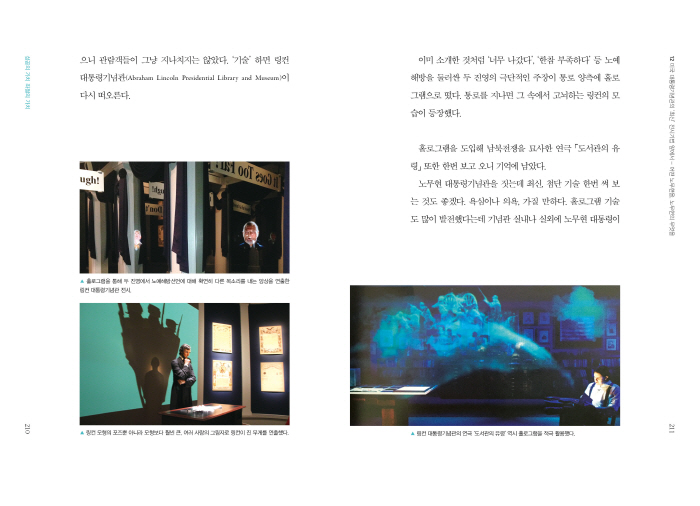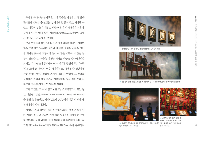 ¡®±â¼ú¡¯ÇÏ¸é ¸µÄÁ ´ëÅë·É±â³ä°ü(Abraham Lincoln Presidential Library and Museum)ÀÌ ´Ù½Ã ¶°¿À¸¥´Ù. ¡®³Ê¹« ³ª°¬´Ù¡¯, ¡®ÇÑÂü ºÎÁ·ÇÏ´Ù¡¯ µî ³ë¿¹ÇعæÀ» µÑ·¯½Ñ µÎ Áø¿µÀÇ ±Ø´ÜÀûÀÎ ÁÖÀåÀÌ Åë·Î ¾çÃø¿¡ Ȧ·Î±×·¥À¸·Î ¶¹´Ù. Åë·Î¸¦ Áö³ª¸é ±× ¼Ó¿¡¼ °í³úÇÏ´Â ¸µÄÁÀÇ ¸ð½ÀÀÌ µîÀåÇß´Ù.