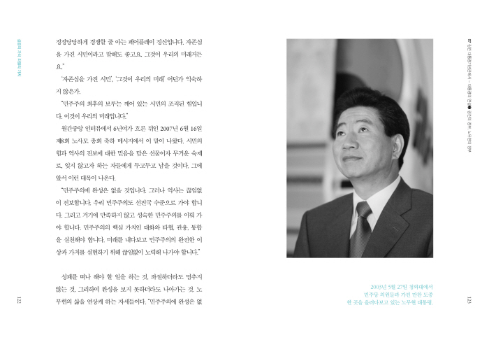 ½Ã´ë¿Í Àå¼Ò´Â ´Ù¸£Áö¸¸ ³ë¹«ÇöÀ» ´ëÅë·ÉÀ¸·Î ¸¸µç ¹Ø¹ÙÅÁ¿¡µµ ±×·¯ÇÑ °¡Ä¡°¡ °üÅëÇÑ´Ù. Ä®·³¿¡¼ ÀüÇØÁö´Â ¼ÖÁ÷ÇÑ ÁÂÀý°ú ȸÀÇ, ±×·³¿¡µµ Æ÷±âÇÏÁö ¾ÊÀº ½Å³ä°ú Èñ¸Á °°Àº °Í ¸»ÀÌ´Ù.
