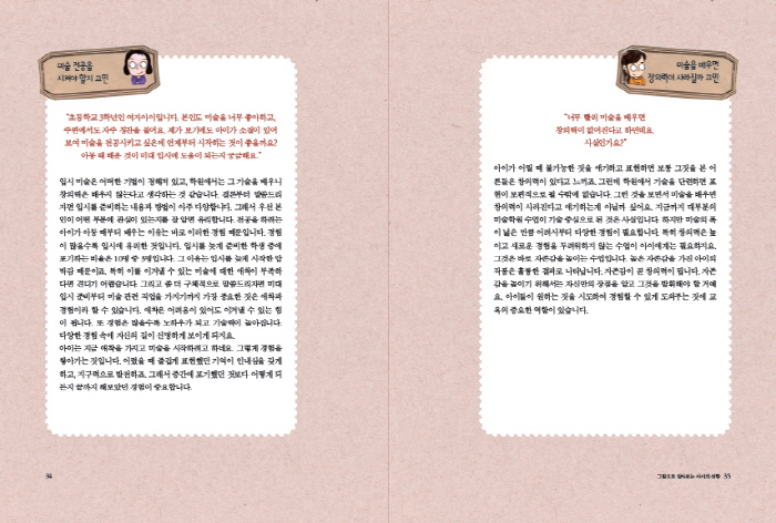 ¾î¸° ¾ÆÀ̵éÀº ±×¸²À» Æí°ß¾øÀÌ ±×¸³´Ï´Ù. ¹°·Ð ¡®±×¸²À» Àß ±×¸®°í ½Í´Ù¡¯¶ó°í »ý°¢ÇÒ ¼ö´Â ÀÖ°ÚÁö¿ä. ±×·¸Áö¸¸ ´ëºÎºÐÀº ÀÌ ±×¸²À» ÅëÇØ¼ ¡®¾î¶°ÇÑ ¸ñÇ¥¸¦ ´Þ¼ºÇؾ߰ڴ١¯¶ó°í °á½ÉÇÏ°í ±×¸®Áö´Â ¾ÊÁö¿ä. ƯÈ÷ ¾î¸± ¶§´Â ³îÀÌó·³ ±×¸²À» ¸¹ÀÌ ±×¸³´Ï´Ù. ±×·¸°Ô ±×¸²À̶ó´Â °ÍÀ» Áñ°Ü ±×¸®´Ù º¸´Ï Àß ±×¸®°Ô µÇ¾î ¹Ì¼ú Àü°øÀ¸·Î °¡´Â ¾ÆÀ̵鵵 ÀÖ°ÚÁö¸¸, ´ëºÎºÐÀº ¹Ì¼úÀ» Àü°øÇÒ ¸ñÀûÀ¸·Î ±×¸®Áö´Â ¾Ê½À´Ï´Ù. Áï ¹Ì¼úÇпø¿¡ ´Ù´Ï´Â °ÍÀº Ãë¹ÌÀÌÀÚ ¾ÆÀ̵éÀÇ ±âº» ¿©°¡È°µ¿ÀÎ ¼ÀÀÌÁö¿ä. ¾ÆÀ̰¡ °¡Áø ¼ºÇâÀ» ¹ß°ßÇÏ´Â ÀÏÀº ±»ÀÌ ¹Ì¼ú Àü°øÀ» À§Çؼ°¡ ¾Æ´Ï´õ¶óµµ ¹Ì·¡¿¡ Áß¿äÇÑ ¿ªÇÒÀ» ÇÕ´Ï´Ù. Áï ´Ù¸¥ Á÷¾÷À» ±¸ÇÒ ¶§ µµ¿òÀÌ µÇÁö¿ä. ¶ÇÇÑ ¾ÆÀ̰¡ ¾î¶°ÇÑ ¼ºÇâÀ» °¡Á³´ÂÁö ÀÌÇØÇϰí ÀÖÀ¸¸é ´õ¿í Èï¹Ì¸¦ ´À³¥ ¸¸ÇÑ °ÍµéÀ» ºÎ¸ð°¡ Á¦°øÇØÁÙ ¼ö ÀÖ½À´Ï´Ù.±×·± ȯ°æµé·Î ÀÎÇØ ¾ÆÀÌ´Â °¡Áö°í ÀÖ´Â ¼ºÇâÀ» ´õ¿í Àß ¹ßÈÖÇÏ°Ô µÉ Å×°í¿ä. ´Ü¼øÈ÷ ±×¸²À» Àß ±×¸®°Ô ÇÏ´Â ¸ñÇ¥¸¦ ³Ñ¾î¼ ¾ÆÀÌÀÇ ¹Ì·¡¸¦ À§Çؼµµ ¿ì¸®´Â ¼ºÇâ¹Ì¼ú¿¡ ´ëÇØ ÀÌÇØÇϰí ÀÖ¾î¾ß ÇÑ´ä´Ï´Ù. ¾ÆÀÌÀÇ ¼ºÇâÀÌ °¡Àå Àß µå·¯³ª´Â °ÍÀÌ ¹Ù·Î Á÷Á¢ ±×¸° ±×¸²À̴ϱî¿ä. -60ÂÊ