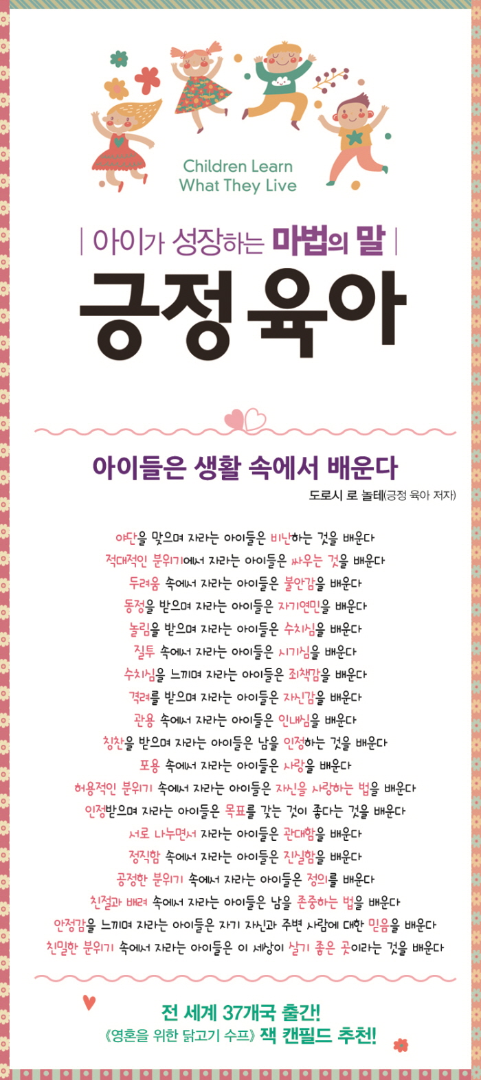 Àü ¼¼°è 37°³±¹¿¡ ¹ø¿ª․Ãâ°£µÇ°í, ÀϺ»¿¡¼ 120¸¸ ºÎ ÀÌ»óÀÇ ÆÇ¸Å¸¦ ±â·ÏÇÑ º£½ºÆ®¼¿·¯ ¡¶Children Learn What They Live¡·°¡ Çѱ¹¿¡µµ »õ·Ó°Ô Ãâ°£µÇ¾ú´Ù.
