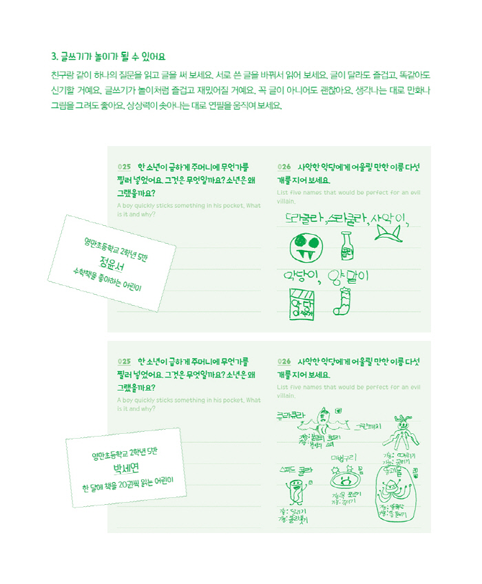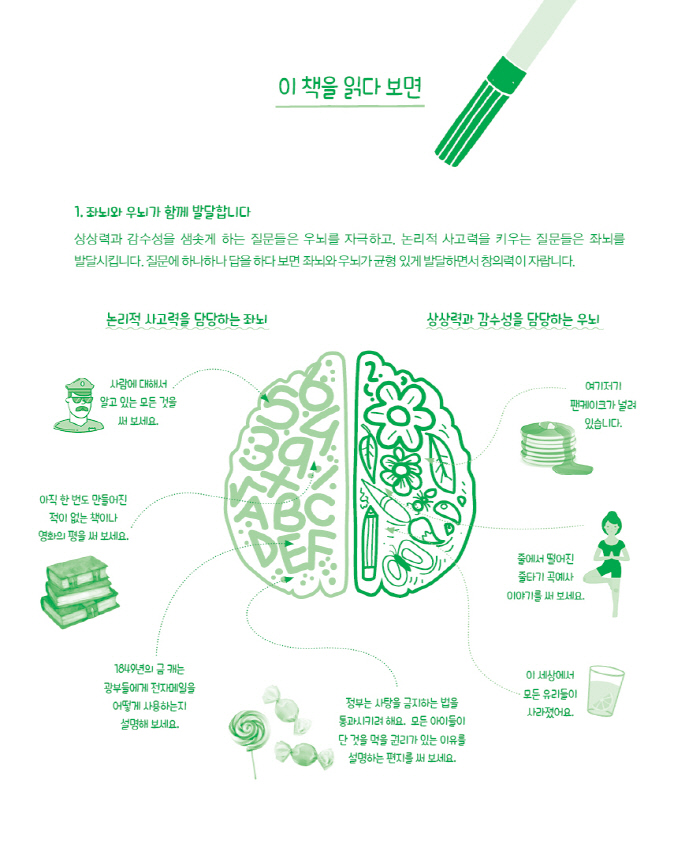 ÀÌ Ã¥Àº âÀÇ·Â ±Û¾²±â ±³À°À» ÇÏ´Â 826 VALENCIA°¡ 10³â ³Ñ°Ô ¼öÁýÇÑ Ã¢ÀÇÀûÀÎ Áú¹®À» ¸ð¾Æ ³õÀº ±Û¾²±â Ã¥ÀÔ´Ï´Ù. ¸ÚÁö°í, Àç¹Õ°í, »ý°¢À» À¯µµÇÏ´Â 642°¡Áö Áú¹®µé·Î ÇлýÀÇ Ã¢ÀÇ·ÂÀÌ »ù¼Ú°Ô Çϰí, ¾î¸°À̵鿡°Ô ÃÖ°íÀÇ ±Û¾²±â ³îÀÌÅͰ¡ µÇ¾î ÁÙ °ÍÀÔ´Ï´Ù. ¾Æ¹« ÆäÀÌÁö³ª ÆîÃļ ¿µ°¨À» ¾ò°í, ½º½º·Î¸¦ Ç¥ÇöÇÏ´Ù º¸¸é Àڽŵµ ¸ð¸£°Ô ±Û¾²±â ½Ç·ÂÀÌ ÇÑ ´Ü°è ¾÷±×·¹ÀÌµå µÉ °ÍÀÔ´Ï´Ù.
