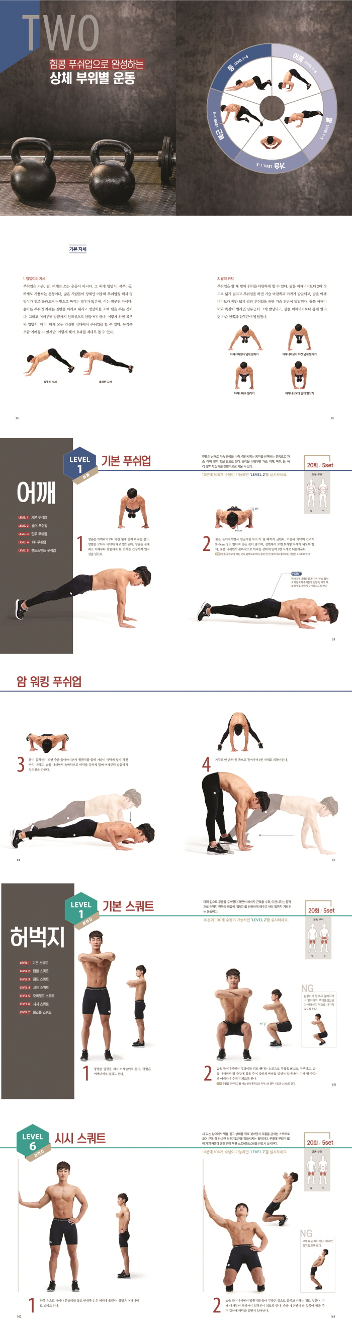 ÀÌ Ã¥Àº Ǫ½¬¾÷°ú ½ºÄõÆ®¸¸À¸·Î Àü½ÅÀ» ¿Ïº®ÇÏ°Ô ¸¸µå´Â ¿îµ¿¹ýÀ» Á¦½ÃÇÑ´Ù. ³²ÀÚ¶ó¸é ´©±¸³ª ²Þ²Ù´Â ¡®ÅÂÆò¾ç °°Àº ¾î±ú¡¯, ¡®¿©ÀÚ°¡ ¾È±â°í ½ÍÀº źźÇÑ °¡½¿¡¯ µîÀ» ºü¸£°Ô °È½Ãų ¼ö ÀÖ´Â ¿îµ¿¹ýÀ¸·Î, ƯÈ÷ Àڽſ¡°Ô ºÎÁ·ÇÑ ½Åü ºÎÀ§¸¸À» ÁýÁß °È½Ãų ¼ö ÀÖµµ·Ï ÇÁ·Î±×·¥ÀÌ Â¥¿© ÀÖ´Â °ÍÀÌ Æ¯Â¡ÀÌ´Ù. »óü´Â ¾î±ú, ÆÈ, °¡½¿, º¹ºÎ, µî 5±ºµ¥, ÇÏü´Â ¾ûµ¢ÀÌ¿Í Çã¹÷Áö 2±ºµ¥·Î ½Åü ºÎÀ§¸¦ ³ª´©¾î ¿øÇÏ´Â ºÎÀ§¸¦ Ű¿öÁÖ´Â ¿îµ¿À» ¸ÅÀÏ 1µ¿ÀÛ¾¿ 10ºÐ°£ 100¹ø¸¸ Çϸé ÄÞÇ÷º½º¸¦ ŸÆÄÇÒ ¼ö ÀÖ´Ù.