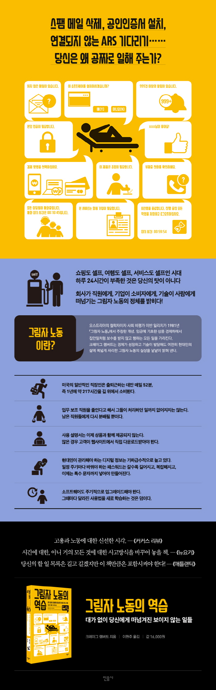 ±â¼úÀÌ ¹ßÀüÇØµµ ±×¸²ÀÚ ³ëµ¿Àº ÁÙÁö ¾Ê°í, ÇÏ·çÀÇ ¸¹Àº ½Ã°£ÀÌ ¿ù±Þ ¸í¼¼¼¿¡ ÂïÈ÷Áö ¾Ê´Â Àϵé·Î Â÷°îÂ÷°î ä¿öÁö°í ÀÖ´Ù. ¿Ö ´Ã ½Ã°£ÀÌ ºÎÁ·ÇÑÁö ±Ã±ÝÇÑ µ¶ÀÚ¶ó¸é ÀÌ Ã¥À» ÅëÇØ ½Ã°£À» ¼ÒºñÇÏ´Â ¹æ½ÄÀ» ¿ÏÀüÈ÷ »õ·Î¿î °üÁ¡À¸·Î ¹Ù¶óº¸°Ô µÉ °ÍÀÌ´Ù. - MD Ãßõ