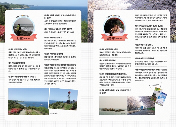 È¥ÀÚ ¿©ÇàÀ» ¶°³ª±â ÀüÀÇ ¼³·½°ú ¿©Çà ÈÄÀÇ º¯ÈµÈ ÀÏ»ó°ú °¨Á¤À» °øÀ¯, °ø°¨Çϰí ÀÖ´Ù.