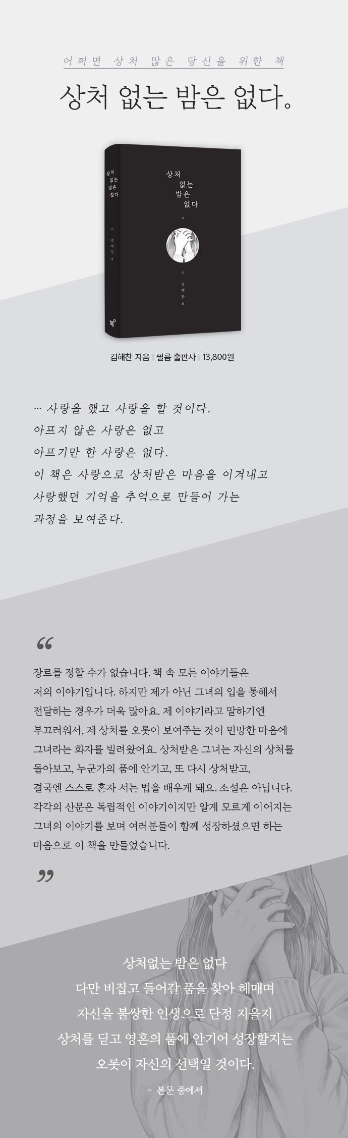 -À帣¸¦ Á¤ÇÒ ¼ö°¡ ¾ø½À´Ï´Ù. Ã¥ ¼Ó ¸ðµç À̾߱âµéÀº ÀúÀÇ À̾߱âÀÔ´Ï´Ù. ÇÏÁö¸¸ Á¦°¡ ¾Æ´Ñ ±×³àÀÇ ÀÔÀ» ÅëÇØ¼ Àü´ÞÇÏ´Â °æ¿ì°¡ ´õ¿í ¸¹¾Æ¿ä. Á¦ À̾߱â¶ó°í ¸»Çϱ⿣ ºÎ²ô·¯¿ö¼, Á¦ »óó¸¦ ¿À·ÔÀÌ º¸¿©ÁÖ´Â °ÍÀÌ ¹Î¸ÁÇÑ ¸¶À½¿¡ ±×³à¶ó´Â ÈÀÚ¸¦ ºô·Á¿Ô¾î¿ä. »óó¹ÞÀº ±×³à´Â ÀÚ½ÅÀÇ »óó¸¦ µ¹¾Æº¸°í, ´©±º°¡ÀÇ Ç°¿¡ ¾È±â°í, ¶Ç ´Ù½Ã »óó¹Þ°í, °á±¹¿£ ½º½º·Î È¥ÀÚ ¼´Â ¹ýÀ» ¹è¿ì°Ô µÅ¿ä. ¼Ò¼³Àº ¾Æ´Õ´Ï´Ù. °¢°¢ÀÇ »ê¹®Àº µ¶¸³ÀûÀÎ À̾߱âÀÌÁö¸¸ ¾Ë°Ô ¸ð¸£°Ô À̾îÁö´Â ±×³àÀÇ À̾߱⸦ º¸¸ç ¿©·¯ºÐµéÀÌ ÇÔ²² ¼ºÀåÇϼÌÀ¸¸é ÇÏ´Â ¸¶À½À¸·Î ÀÌ Ã¥À» ¸¸µé¾ú½À´Ï´Ù.