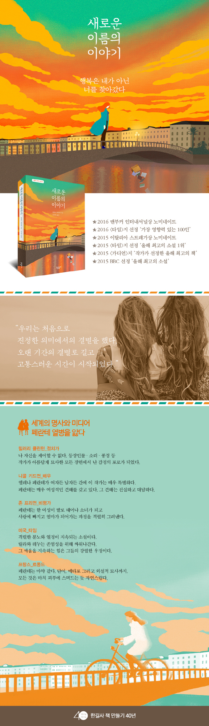 ÀÌÅ»¸®¾Æ ³ªÆú¸®¿¡¼ Ãâ»ýÇÑ ÀÛ°¡·Î, ³ªÆú¸®¸¦ ¶°³ª °íÀü ¹® ÇÐÀ» Àü°øÇÏ°í ¿À·£ ¼¼¿ùÀ» ¿Ü±¹¿¡¼ º¸³Â´Ù´Â »ç½Ç ¿Ü¿¡ ¾Ë ·ÁÁø ¹Ù°¡ ¾ø´Ù. ¡®¿¤·¹³ª Æä¶õÅס¯¶ó´Â À̸§Á¶Â÷µµ ÇʸíÀÌ´Ù. ÀÛǰ¸¸ÀÌ ÀÛ°¡¸¦ º¸¿©Áشٰí ÁÖÀåÇÏ´Â Æä¶õÅ×´Â ¾î¶² ¹Ìµð ¾î¿¡µµ ¸ð½ÀÀ» µå·¯³»Áö ¾Ê°í ¼¸éÀ¸·Î¸¸ ÀÎÅͺ並 Çã¶ôÇÑ ´Ù. ÀÌÅ»¸®¾Æ¿¡¼´Â ¿©ÀüÈ÷ ÀÛ°¡ÀÇ Á¤Ã¼¿Í °ü·ÃµÈ ¿©·¯ °¡Áö ¼Ò¹®ÀÌ ¶°µ¹Áö¸¸ ¾ÆÁ÷µµ º£ÀÏ¿¡ ½Î¿© ÀÖ´Ù. 1992³â ù ÀÛǰ ¡º¼º°¡½Å »ç¶û¡»À» Ãâ°£ÇØ ÀÌÅ»¸®¾Æ Æò´ÜÀ» ³î¶ó°Ô ÇÑ Æä¶õÅ×´Â 2002³â ¡ºÈ¦·Î¼±â¡»¸¦ Ãâ°£ÇÑ´Ù. ¿¡¼¼ÀÌ Áý ¡º¶ó ÇÁ¶õÅõ¸»¸®¾Æ¡»(2003)¿Í ¼Ò¼³ ¡º¾îµÒÀÇ µþ¡»(2006), ¡º¹ã ÀÇ ¹Ù´Ù¡»(2007)¸¦ Ãâ°£ÇÑ µÚ 2011³â ¡®Æä¶õÅ× ¿º´¡¯(#Ferrante- Fever)À» ÀÏÀ¸Å² ¡®³ªÆú¸® 4ºÎÀÛ¡¯ Á¦1±Ç ¡º³ªÀÇ ´«ºÎ½Å Ä£±¸¡»¸¦ Ãâ°£ÇÑ´Ù. ÀÌ¾î¼ ¡º»õ·Î¿î À̸§ÀÇ À̾߱⡻ ¡º¶°³ª°£ ÀÚ¿Í ¸Ó¹« ¸¥ ÀÚ¡» ¡ºÀÒ¾î¹ö¸° ¾ÆÀÌ À̾߱⡻±îÁö ÃÑ ³× ±ÇÀ» Ãâ°£ÇØ ¼¼°è ÀÇ º£½ºÆ®¼¿·¯ ÀÛ°¡°¡ µÈ´Ù. ¡®³ªÆú¸® 4ºÎÀÛ¡¯Àº ÀÌÅ»¸®¾Æ¿Í ¿µ¹Ì±ÇÀ» ºñ·ÔÇØ ÇÁ¶û½º, ½ºÆä ÀÎ, µ¶ÀÏ µî ÃÑ 43°³±¹¿¡¼ ¹ø¿ª‧Ãâ°£µÇ°í ÀÖ´Ù. 2014³â ¡®³ª Æú¸® 4ºÎÀÛ¡¯ Á¦2±ÇÀ¸·Î ±¹Á¦ IMPAC ´õºí¸° ¹®ÇÐ»ó¿¡ ³ë¹Ì ³×ÀÌÆ®µÇ¾ú°í, 2015³â¿¡´Â ÀÌÅ»¸®¾Æ¿¡¼ ÃÖ°í ±ÇÀ§¸¦ ÀÚ¶û ÇÏ´Â ¹®ÇÐ»ó ½ºÆ®·¹°¡»óÀÇ ÃÖÁ¾ È帷Π¼±Á¤µÇ¾ú´Ù. 2016³â ¿¡´Â ¡®³ªÆú¸® 4ºÎÀÛ¡¯ÀÇ Á¦4±ÇÀ¸·Î ¸ÇºÎÄ¿ ÀÎÅͳ»¼Å³Î»ó ÃÖÁ¾ Èĺ¸¿¡ ¿Ã¶úÀ¸¸ç, ¡ºÅ¸ÀÓ¡»Áö´Â ¡®¼¼°è¿¡¼ °¡Àå ¿µÇâ·Â ÀÖ´Â 100 ÀΡ¯ °¡¿îµ¥ ÇÑ ¸íÀ¸·Î ¿¤·¹³ª Æä¶õÅ׸¦ ¼±Á¤Çß´Ù.