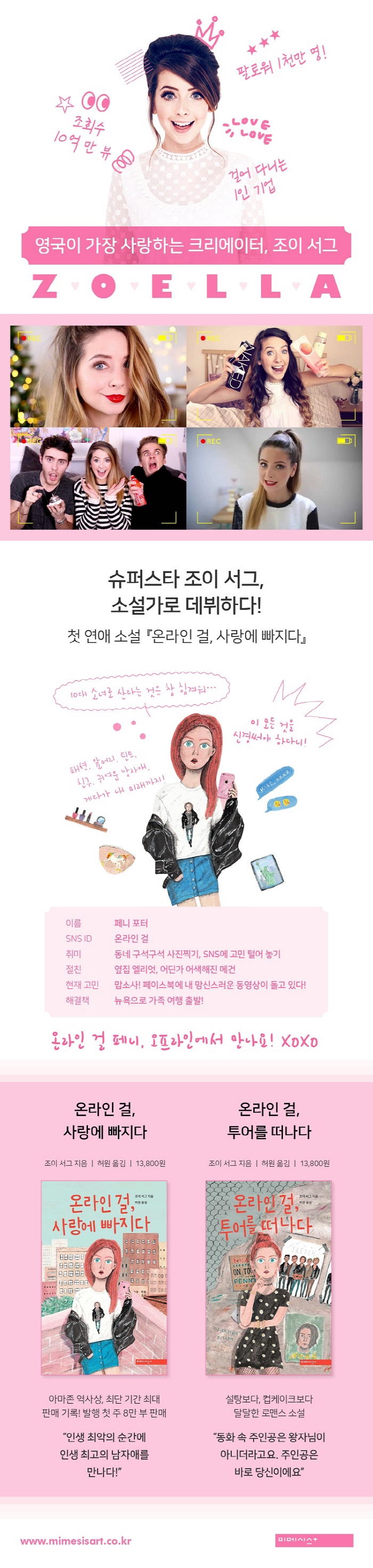 ¿µ±¹ Ãâ½ÅÀÇ À¯Æ©ºê ½´ÆÛ½ºÅ¸ÀÌÀÚ ºêÀ̷ΰÅ. ÆÈ·Î¿ö ¼ö°¡ 1õ¸¸ ¸íÀ» ³Ñ¾î¼± À¯Æ©ºê ä³Î <Á¶¿¤¶óZoella>¸¦ ¿î¿µÇÑ´Ù. Á¶¿¤¶ó´Â ½º½º·Î Å͵æÇÑ ±â¹ßÇÑ ¸ÞÀÌÅ©¾÷°ú ¼¼·ÃµÈ ÆÐ¼Ç, Çì¾î ½ºÅ¸Àϸµ, °£´ÜÇÏ°Ô ¿¬ÃâÇÒ ¼ö ÀÖ´Â ÀÎÅ׸®¾î ÆÁ µîÀ» ÁÖ·Î ¼Ò°³ÇØ ¿Ô´Ù. ¶Ç ÀÚ½ÅÀÇ ³²µ¿»ýÀ̳ª Àα⠺êÀ̷ΰſÍÀÇ °øµ¿ ¿¬Ãâ µî ´Ù¸¥ ä³Î°ú Â÷º°À» µÐ ÁøÇàÀ¸·Î Àü ¼¼°è ÆÈ·Î¿öµéÀÇ Æø³ÐÀº »ç¶ûÀ» ¹Þ°í ÀÖ´Ù. Á¶¿¤¶ó ä³Î ¿Ü¿¡ °øÈ² Àå¾Ö¸¦ ±Øº¹ÇÑ ÀÏȳª ¿ìÁ¤°ú ÀÏ»ó¿¡ °üÇØ ¼ÖÁ÷ÇÑ À̾߱⸦ ³ª´©´Â ¼ºê ä³Î <¸ð¾îÁ¶¿¤¶óMoreZoella>µµ º°µµ·Î µÎ°í ÀÖÀ¸¸ç µÎ ä³ÎÀº ¸ðµÎ ÇÕÃÄ Á¶È¸ ¼ö 10¾ï¸¸À» µ¹ÆÄÇß´Ù. 2014³â ÀÚÀüÀû À̾߱⸦ ´ãÀº ù ¼Ò¼³ ¡º¿Â¶óÀÎ °É, »ç¶û¿¡ ºüÁö´ÙGirl Online¡»´Â Ãâ°£ ÇÑ ´Þ ¸¸¿¡ 18¸¸ ºÎ¸¦ ÆÇ¸ÅÇØ ¿µ±¹ º£½ºÆ®¼¿·¯ Áý°è »ç»ó °¡Àå ºü¸¥ ÆÇ¸Å ±â·ÏÀ» ¼¼¿ü´Ù. ÀÌ Ã¥Àº Æë±Ï ·£´ýÇϿ콺°¡ 1¾ï ¿ø¿¡ °è¾àÇß´Ù´Â ¼Ò½ÄÀÌ ¾Ë·ÁÁö¸é¼ ÈÁ¦¸¦ ¸ð¾Ò°í, 27°³±¹¿¡ ÆÇ±ÇÀÌ Ã¼°áµÇ´Â ±â¿°À» ÅäÇß´Ù. ù ¼Ò¼³ÀÇ ¼º°øÀ¸·Î 2015³â ¡º¿Â¶óÀÎ °É, Åõ¾î¸¦ ¶°³ª´ÙGirl Online: On Tour¡»¸¦, 2016³â ¡º¿Â¶óÀÎ °É, ¼Ö·Î°¡ µÇ´ÙGirl Online: Going Solo¡»¸¦ ¹ßÇ¥Çß´Ù. ÇöÀç ÀÚ½ÅÀÇ Ã¹ ºê·£µå <Á¶¿¤¶ó>¸¦ ¸¸µé¾î º»°ÝÀûÀ¸·Î 1ÀÎ ±â¾÷°¡ÀÇ Çຸ¸¦ °Þ°í ÀÖ´Ù. www.zoella.co.uk