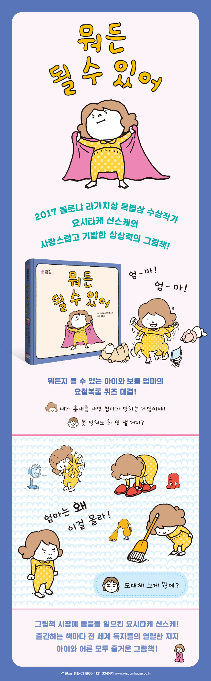 »¡·¡¸¦ °³´Â ¾ö¸¶ ¿·¿¡¼ ¹®Á¦¸¦ ³¾ Å×´Ï ¸ÂÇô º¸¶ó´Â ¾ÆÀÌ. ¹®Á¦¸¦ ¸ÂÈ÷Áö ¸øÇÒ±î °ÆÁ¤ÇÏ´Â ¾ö¸¶¿¡°Ô ½¬¿î ¹®Á¦¶ó¸ç °Ý·ÁÇÑ µÚ, ¾ö¸¶´Â °¨È÷ »ó»óµµ ¸øÇÒ ´Ù¾çÇÑ ¸ð½ÀÀ¸·Î º¯½ÅÇÑ´Ù. ¿ª½Ã³ª ¾ö¸¶´Â ±×°Ô ¹»±î °í¹ÎÇϸç ¿¿ ¸Å´Âµ¥¡¦¡¦. ¹«±Ã¹«Áø º¯½ÅÀ» ÇÏ´Â ¾ÆÀ̸¦ µû¶ó°¡´Ù º¸¸é ±â¹ßÇÑ »ý°¢¿¡ ³î¶ó´Â °Í°ú µ¿½Ã¿¡ ¹è²Å ºüÁö´Â ¿ôÀ½À» °æÇèÇÏ°Ô µÈ´Ù.