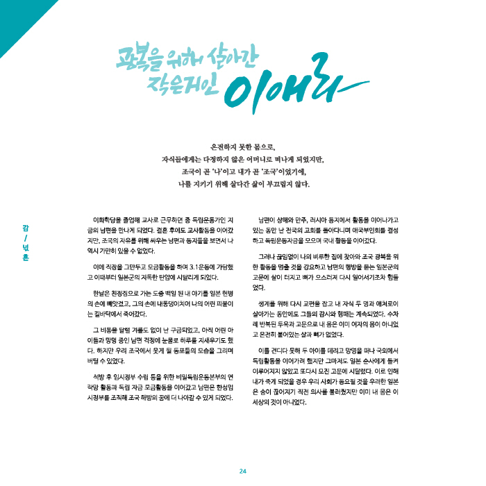 ¡Û ¿ì¸®°¡ ¸¶À½¼Ó¿¡ Ç×»ó »õ°ÜµÎ°í ÁöÄѾßÇÒ ¡®¿ì¸® ¹ÎÁ·ÀÇ ¶¥°ú ¹®È¸¦ Çѹø ´õ