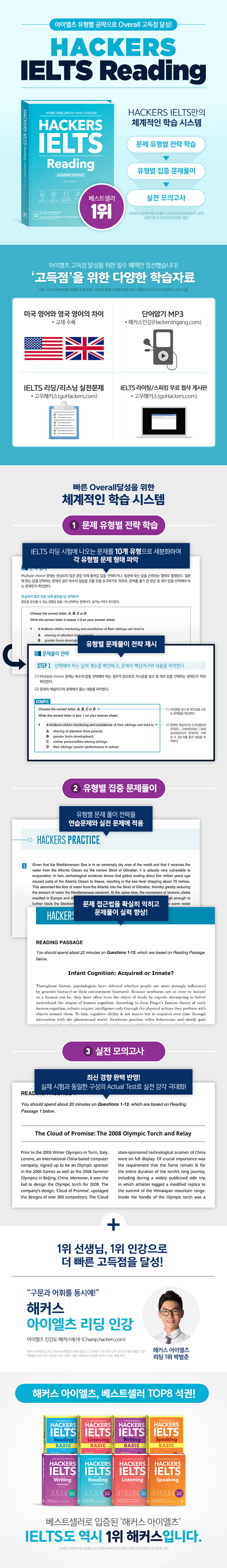 <Hackers IELTS Reading>°ú ÇÔ²²¶ó¸é ¹®Á¦¸¦ À¯Çüº°·Î °ø·«ÇÏ°í °íµæÁ¡ÇÒ ¼ö ÀÖ½À´Ï´Ù.