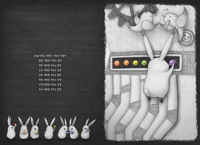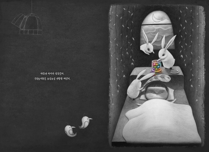 ±è¼Ò¼± ÀÛ°¡´Â ¡¶»çÀÚ»ïÃÌ¡·¿¡¼ ¾î¸¥µéÀÇ ¼±ÀÔ°ßÀ», ¡¶È°¡¿Í °í¾çÀÌ¡·¿¡¼´Â ¾ÆÀ̵鸸ÀÇ ÃµÁø³¸¸ÇÔÀ» ±×·Á ³Â¾î¿ä. ÀÛ°¡´Â ¼¼ ¹øÂ° âÀ۱׸²Ã¥ ¡¶±¸¸§Åä³¢¡·¸¦ ÅëÇØ ¾ÆÀÌµé ¸¶À½¿¡ ÇѰÉÀ½ ´õ ´Ù°¡¼·´Ï´Ù. ¶§·Î´Â »óó¹Þ°í, ¶§·Î´Â ¾ÆÆÄÇÏ´Â ¾ÆÀ̵鿡°Ô À§·Î¸¦ °Ç³Ú ¼ö ÀÖ´Â ¡®±¸¸§Åä³¢¡¯°¡ µÇ¾î¼ ¸»ÀÌ¿¡¿ä. ±¸¸§Åä³¢µé ¾Õ¿¡ ³ªÅ¸³ ÇÑ ¾ÆÀÌ. ¾ÆÀÌ´Â ´ÞÄÞÇÑ »çÅÁÀ» ¸Ô°í ÀÖÁö¸¸ ¾îµò°¡ ¿Ü·Î¿ö º¸ÀÔ´Ï´Ù. ÀÛ°¡´Â Á¶½É½º·´°Ô ¾ÆÀÌÀÇ µÚ¸¦ ÂѽÀ´Ï´Ù. ±×¸®°í ¾ÆÀ̰¡ Ȱ¦ ¿ôÀ» ¼ö ÀÖµµ·Ï Ưº°ÇÑ ¼±¹°À» ÇÏÁö¿ä.