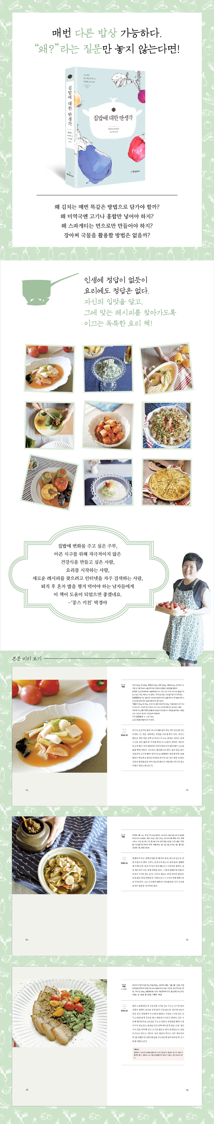 ¸Å¹ø ´Ù¸¥ ¹ä»óÀÌ °¡´ÉÇÏ´Ù. "¿Ö?"¶ó´Â Áú¹®¸¸ ³õÁö ¾Ê´Â´Ù¸é... ÀÚ½ÅÀÇ ÀÔ¸ÀÀ» ¾Ë°í, ±×¿¡ ¸Â´Â ·¹½ÃÇǸ¦ ã¾Æ°¡µµ·Ï À̲ô´Â µ¶Æ¯ÇÑ ¿ä¸® Ã¥! -MD Ãßõ-