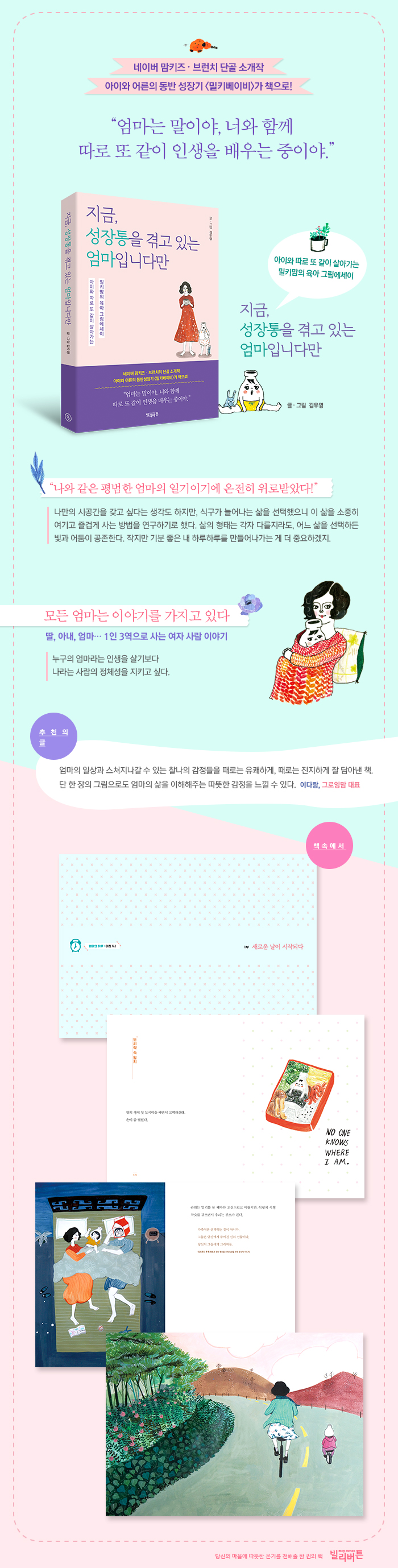 ¡®¹ÐŰº£À̺ñ¡¯¶ó´Â ÇʸíÀ¸·Î Ȱµ¿Çϰí ÀÖ´Â ±×¸² ÀÛ°¡ ±è¿ì¿µ. ÀÌÈ¿©ÀÚ´ëÇб³¿¡¼ ¿µ»óÀ» °øºÎÇϰí īī¿ÀÅåÀ» ¸¸µç īī¿ÀKakao Corp.¿¡¼ UXµðÀÚÀ̳ʷΠÀÏÇß´Ù. µþÀ» ³º°í ¾ö¸¶°¡ µÇ¸é¼ ´À³¢´Â »çÀûÀÎ °¨Á¤°ú À°¾Æ¸¦ ÇÏ¸ç °Þ´Â È²´çÇϰí À¯ÄèÇÑ °æÇèÀ» ³×À̹öºí·Î±×¿¡ ¿¬ÀçÇϱ⠽ÃÀÛÇß´Ù. ¾ÆÀ̸¦ Ű¿ì´Â »ç¶÷À̶ó¸é °ø°¨ÇÒ ¼ö¹Û¿¡ ¾ø´Â ¡®¹ÐŰº£À̺ñ¡¯´Â ¼ö¸¹Àº À°¾Æ µ¿Áöµé¿¡°Ô À§·Î¿Í ÀÀ¿øÀÌ µÇ¾ú´Ù. ÀúÀÚ´Â <µð¾ÆÆ¼½ºÆ®¸Å°ÅÁø>¿¡ ¡®µðÀÚÀÌ³Ê ¾ö¸¶ÀÇ Ã¢ÀÇÀûÀÎ ³îÀÌ ·¹½ÃÇÇ¡¯¸¦ ¿¬ÀçÇϰí ÀÖÀ¸¸ç »ï¼ºSDS¸¦ ºñ·ÔÇÑ ±â¾÷¿¡µµ Ä®·³À» ±â°íÇϰí ÀÖ´Ù. ¶ÇÇÑ <¸¾¾Ø¾ÓÆÎ>, <±×·ÎÀ׸¾>À» ºñ·ÔÇÑ ´Ù¾çÇÑ ¹Ìµð¾î¿Í ÄÝ¶óº¸ ÀÛ¾÷À» Çϸç, ÃÖ±Ù¿¡´Â ¡®°æ³²±¹Á¦¾ÆÆ®Æä¾î¡¯°ú ¡®¼ ¿ïÀÏ·¯½ºÆ®·¹ÀÌ¼ÇÆä¾î¡¯¿¡ ¾ö¸¶ÀÇ ½Ã¼±À» ´ãÀº ÁøÁöÇÑ ÀÛǰÀ» ÃâǰÇß´Ù.